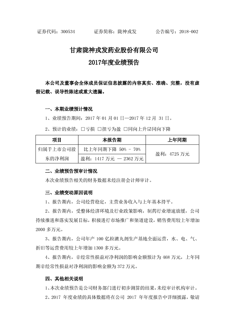 2017年度業績預告