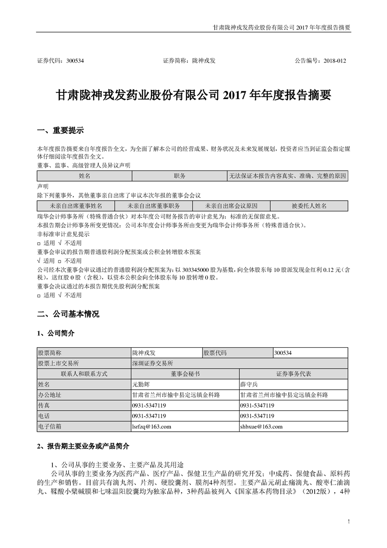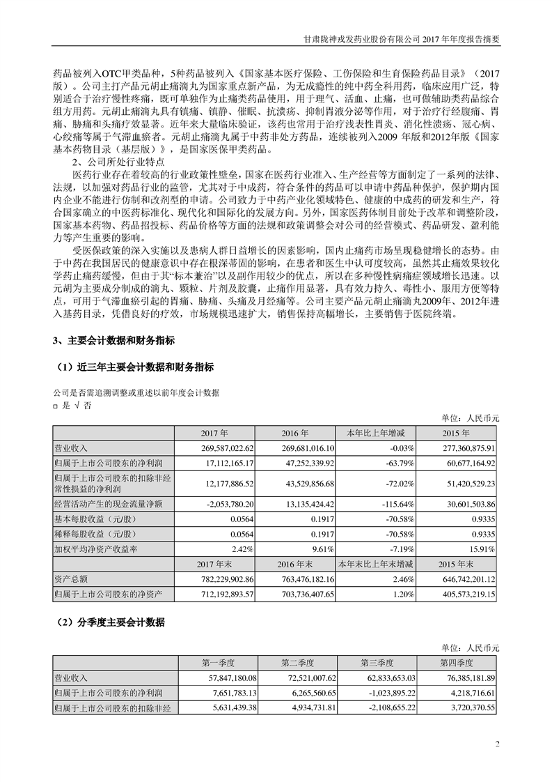 2017 年年度報告摘要