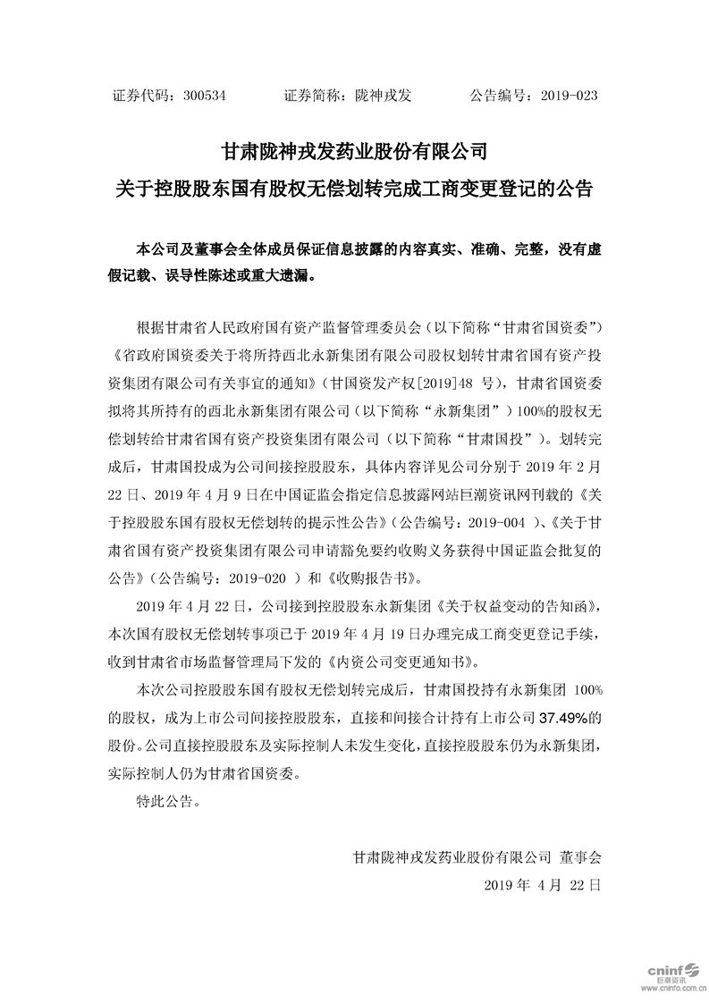 關于控股股東國有股權無償劃轉完成工商變更登記的公告