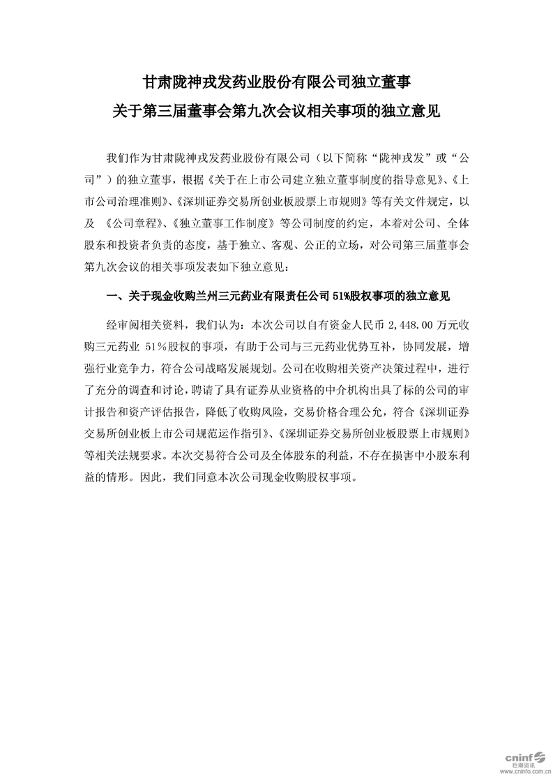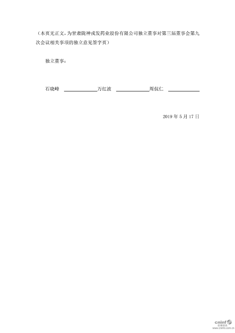 關于第三屆董事會第九次會議相關事項的獨立意見