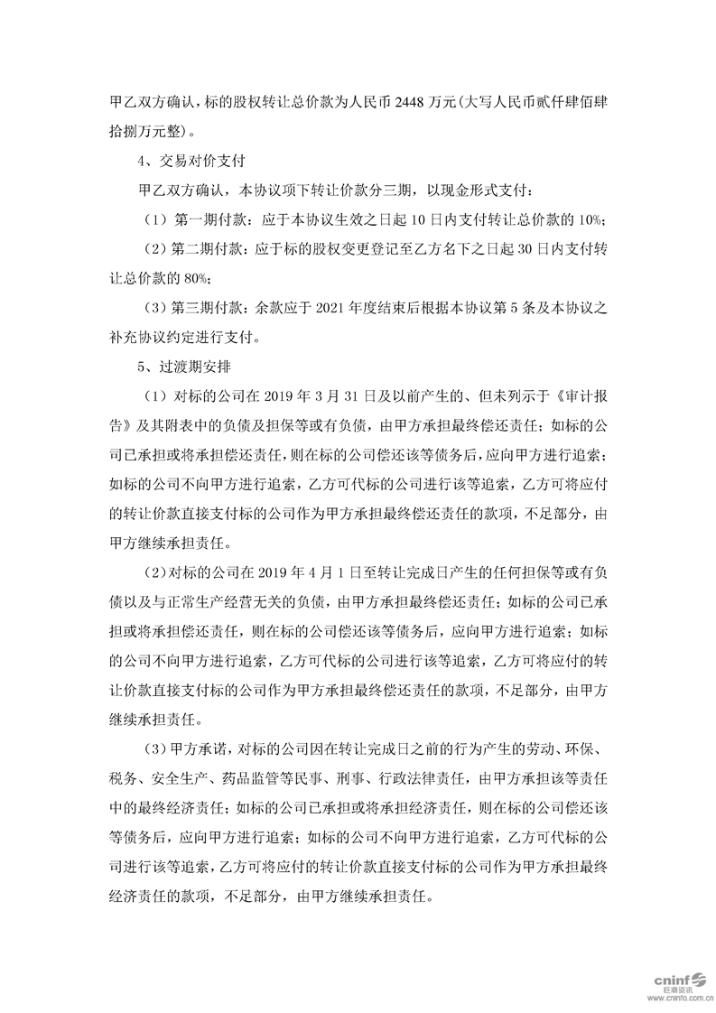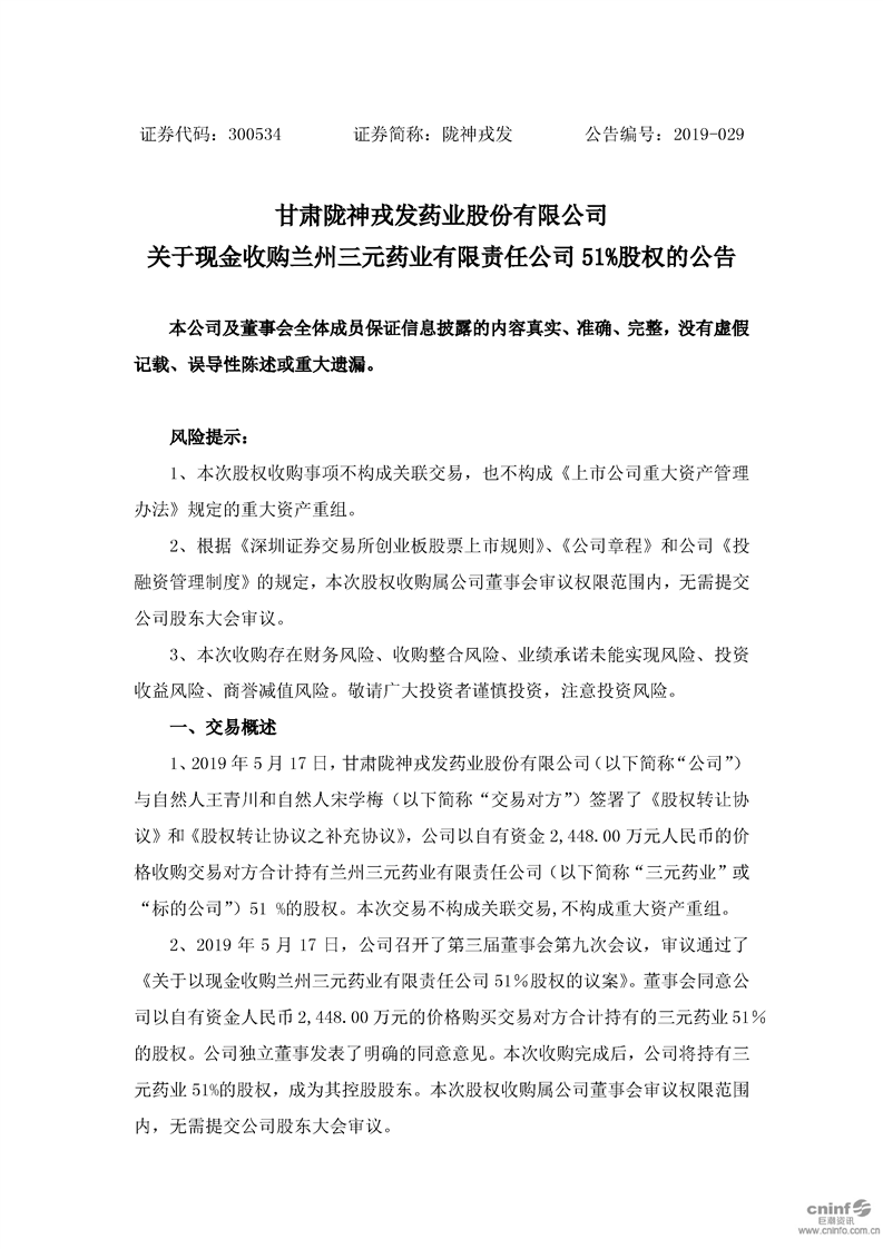 關(guān)于現(xiàn)金收購蘭州三元藥業(yè)有限責(zé)任公司51%股權(quán)的公告