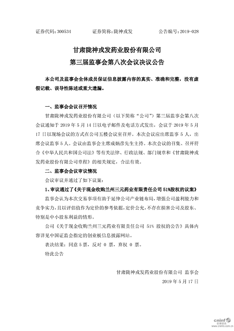 第三屆監事會第八次會議決議公告