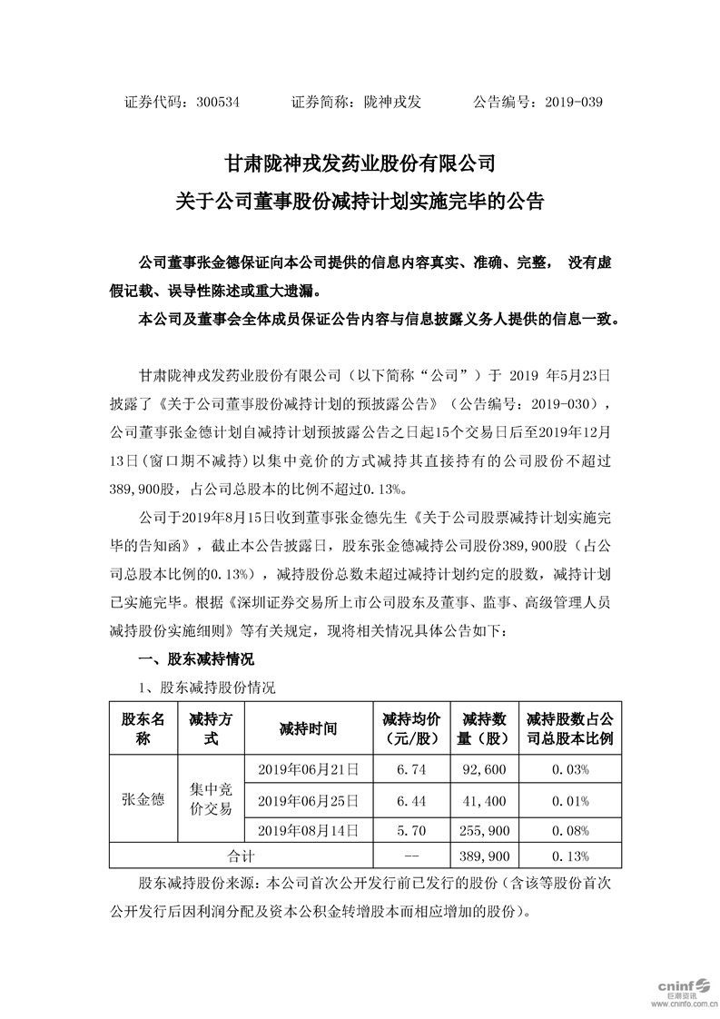 關(guān)于公司董事股份減持計(jì)劃實(shí)施完畢的公告