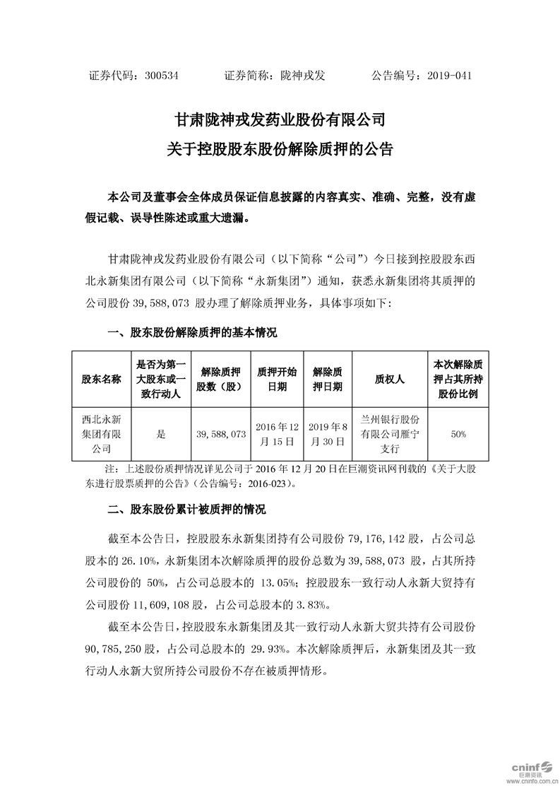 關于控股股東股份解除質押的公告