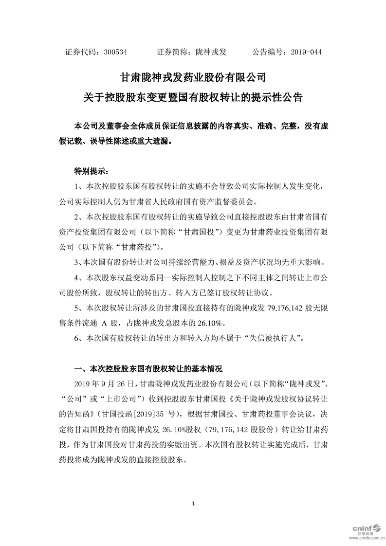 關于控股股東變更暨國有股權轉讓的提示性公告