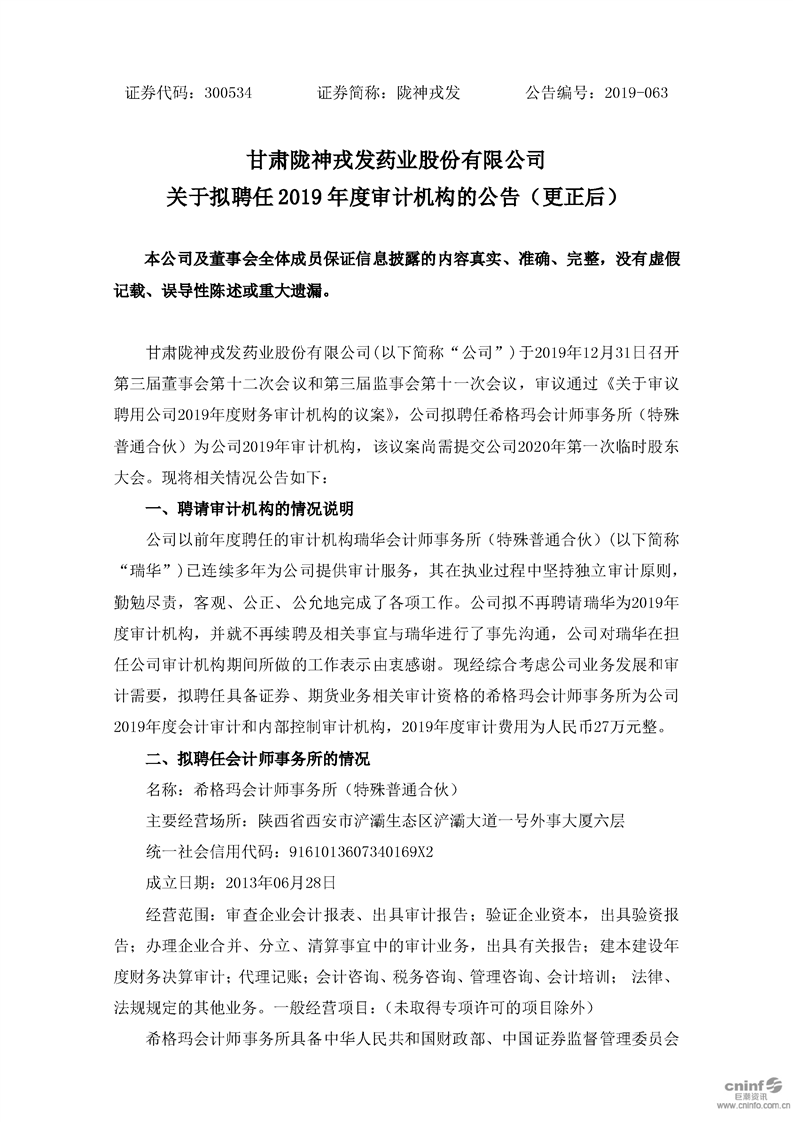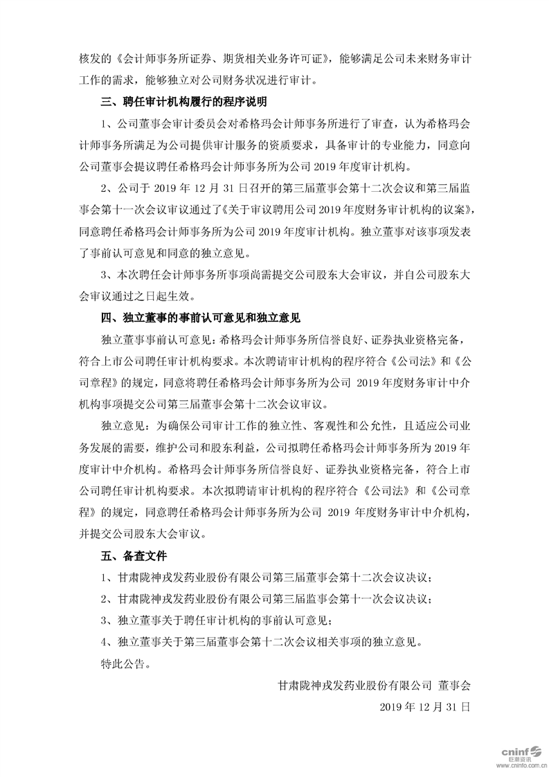 關(guān)于擬聘任2019年度審計(jì)機(jī)構(gòu)的公告(更新后)