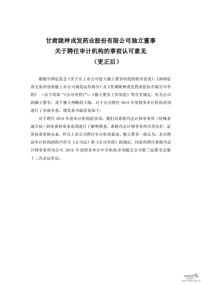 獨立董事關(guān)于聘任審計機(jī)構(gòu)的事前認(rèn)可意見(更新后)