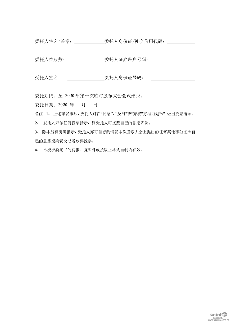 關(guān)于召開(kāi)2020年第一次臨時(shí)股東大會(huì)的提示性公告
