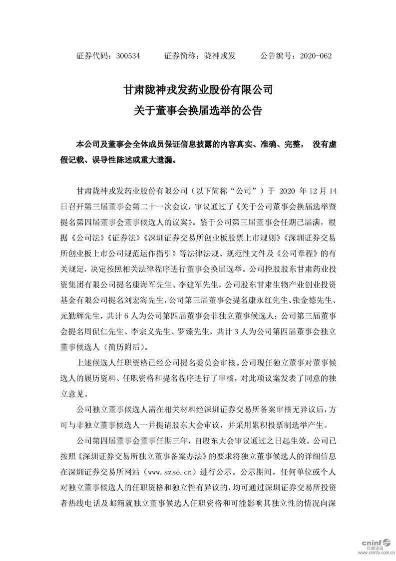 關于董事會換屆選舉的公告