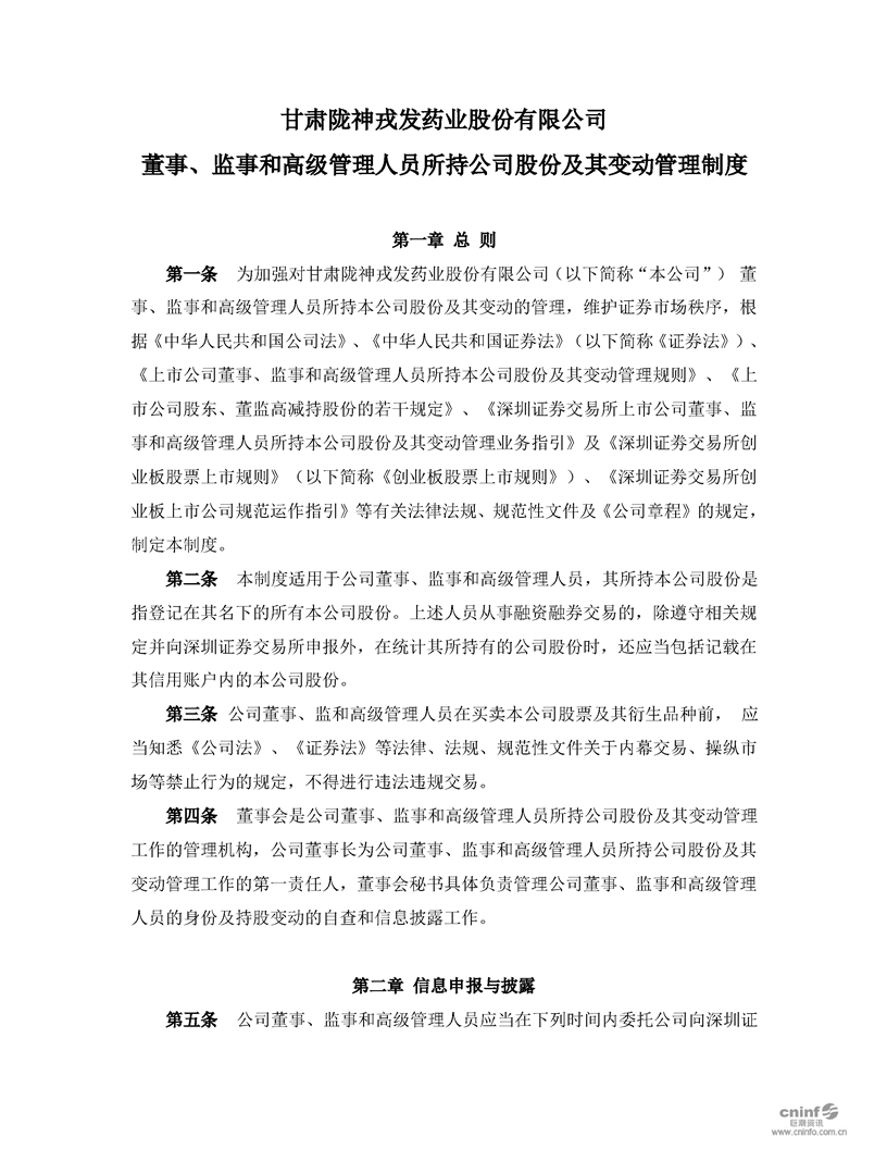 董事、監事和高級管理人員所持公司股份及其變動管理制度