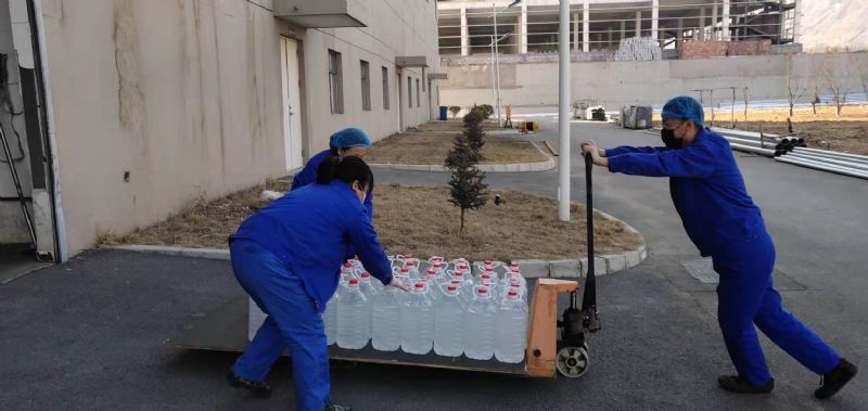 隴神戎發生產一線員工緊急配制75%酒精,用于疫情防控
