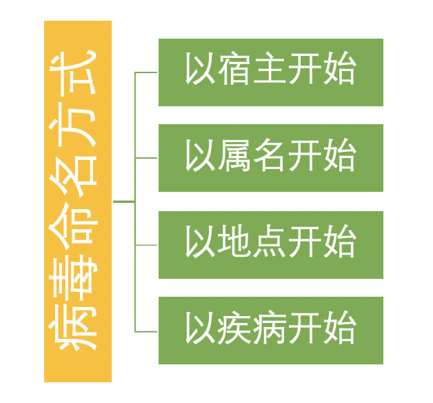 下表例示了一些病毒“種”名的命名方式及其解讀: