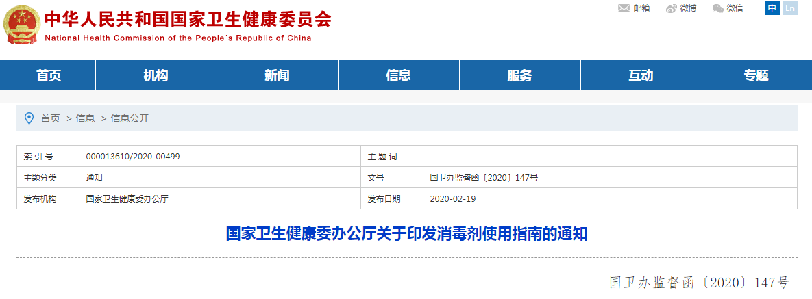國家衛(wèi)生健康委辦公廳關(guān)于印發(fā)消毒劑使用指南的通知
