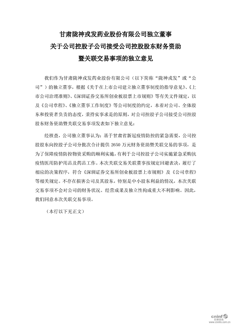 獨立董事關于公司控股子公司接受公司控股股東財務資助暨關聯交易事項的獨立意見