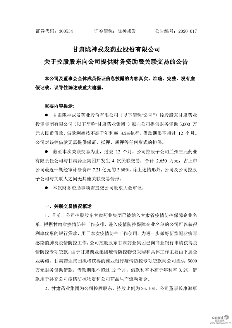 關于控股股東向公司提供財務資助暨關聯交易的公告