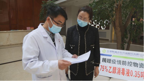 甘肅隴神戎發藥業股份有限公司向蘭州出入境邊防檢查站、甘肅省聽力語言康復中心捐贈75%乙醇消毒液