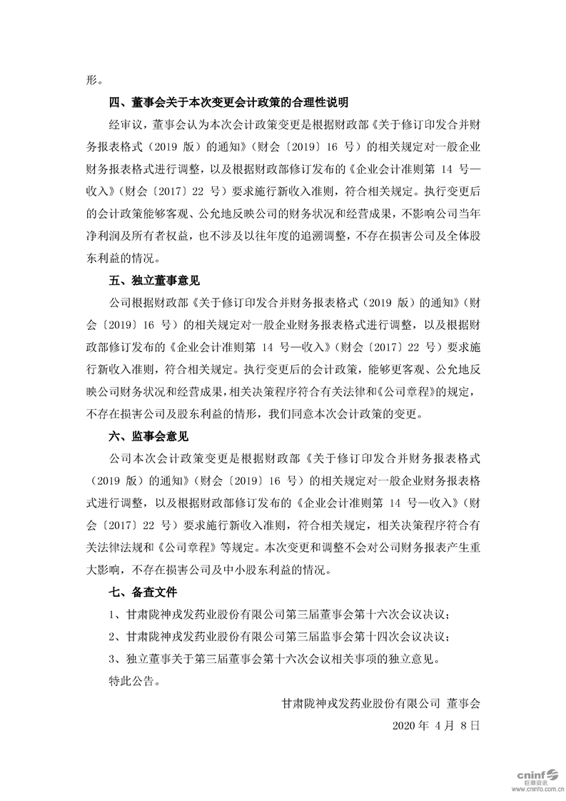 關于會計政策變更的公告