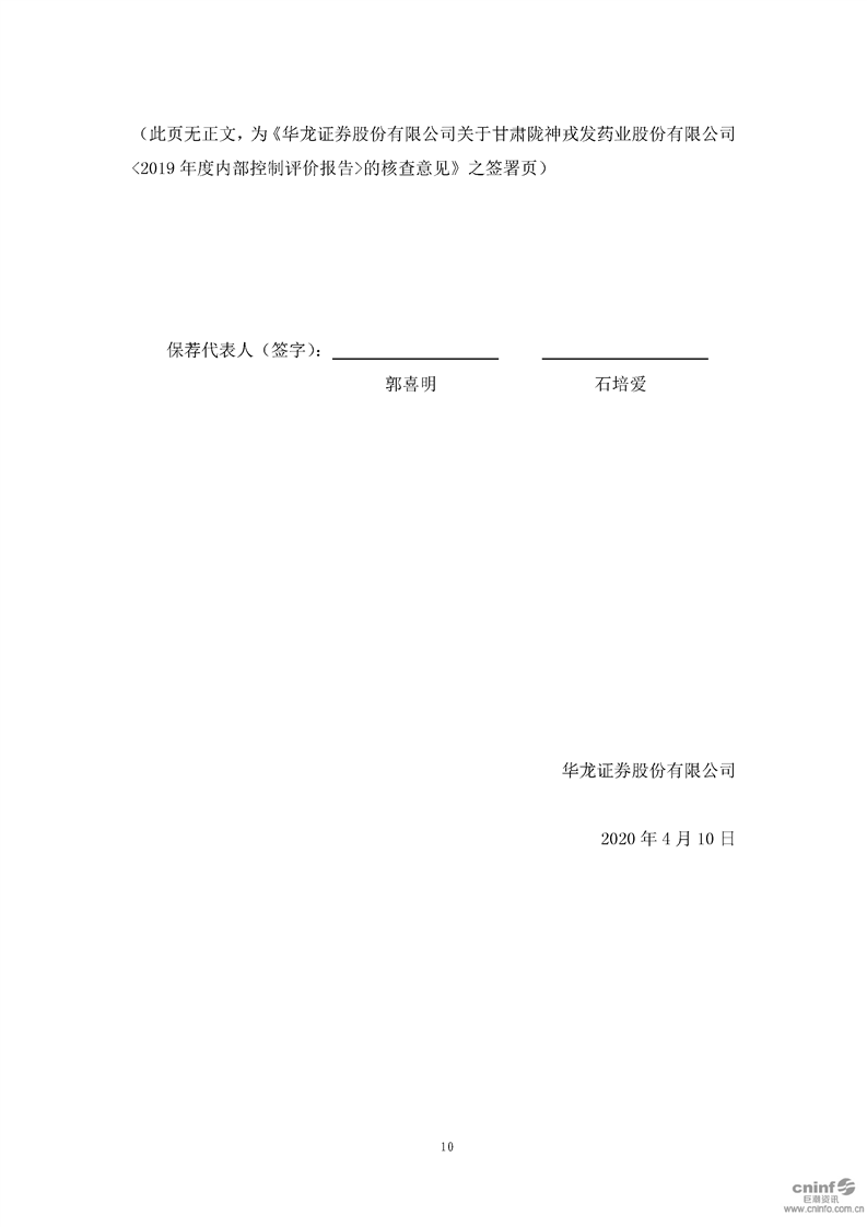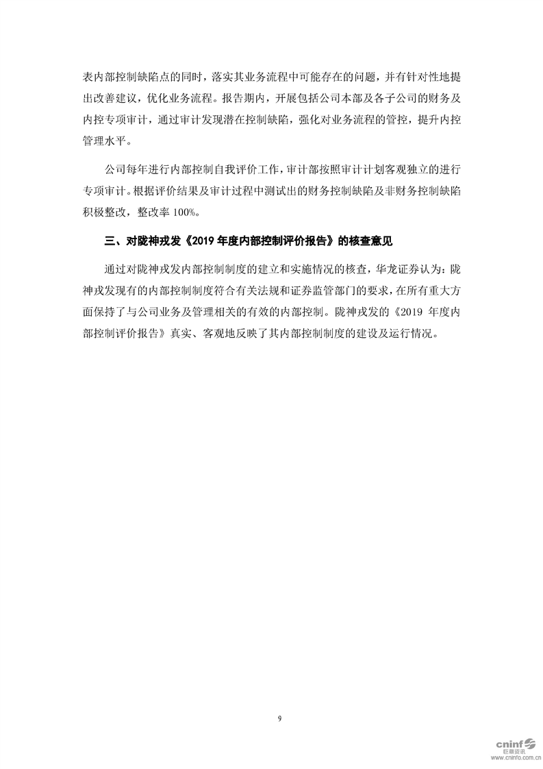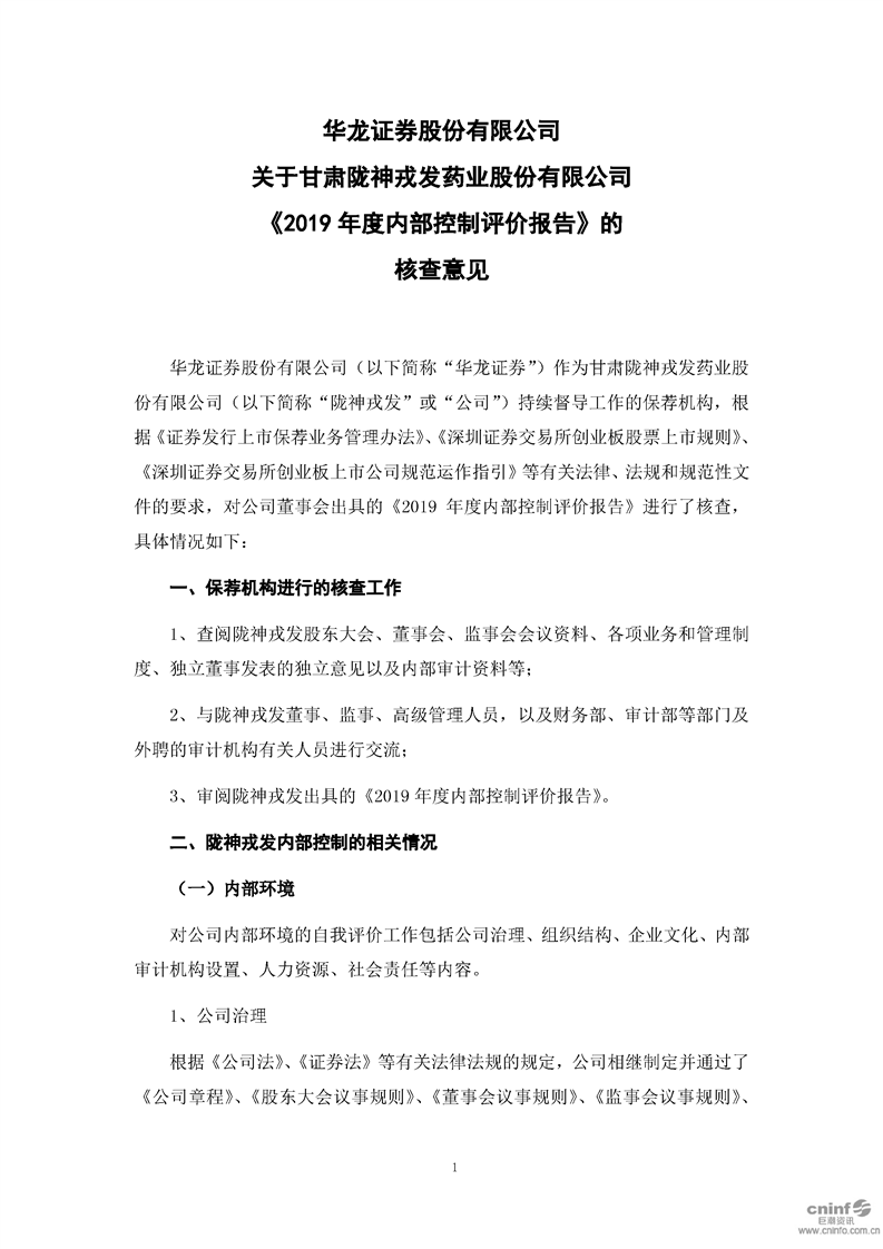 華龍證券股份有限公司關于公司《2019年度內部控制評價報告》的核查意見