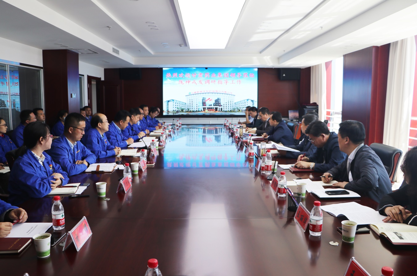 5月28日,甘肅藥業投資集團有限公司黨委書記、董事長魏陽帶領集團領導班子等一行12人蒞臨隴神戎發調研指導工作,隴神戎發全體領導班子全程陪同。