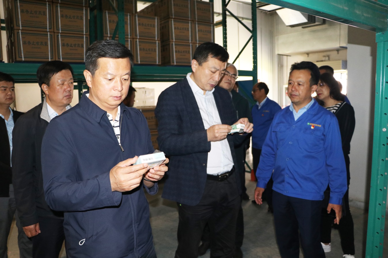 魏陽一行先后來到危化品庫、成品庫建設項目、前處理提取車間、原材料庫、藥品成品庫房、鍋爐房、制劑車間及技術中心參觀調研,詳細了解危爆物品管理、項目建設情況、原材料采購、產品產銷、檢驗研發等情況。