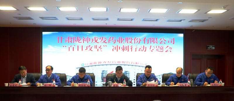 為進一步落實集團公司第29次黨委會會議精神,持續(xù)推進公司“百日攻堅”沖刺行動各項任務落地見效,確保2021年重點工作、重點任務、重點項目全面完成。2021年10月15日上午,隴神戎發(fā)組織公司全體領導班子、班組長以上管理人員、部分職工代表及所屬企業(yè)主要負責人召開了“百日攻堅”沖刺行動專題工作會議。會議由公司董事、黨委書記、總經理康永紅主持,甘肅藥業(yè)集團黨委委員、副總經理兼隴神戎發(fā)董事長康海軍參加會議。
