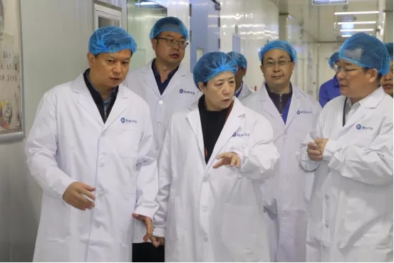 隨后,何偉副省長一行進入生產制劑車間,了解元胡止痛滴丸的滴制、生產等工藝流程,并進入外包裝車間在外包裝聯動線前參觀了元胡止痛滴丸內包及外包裝生產全過程。