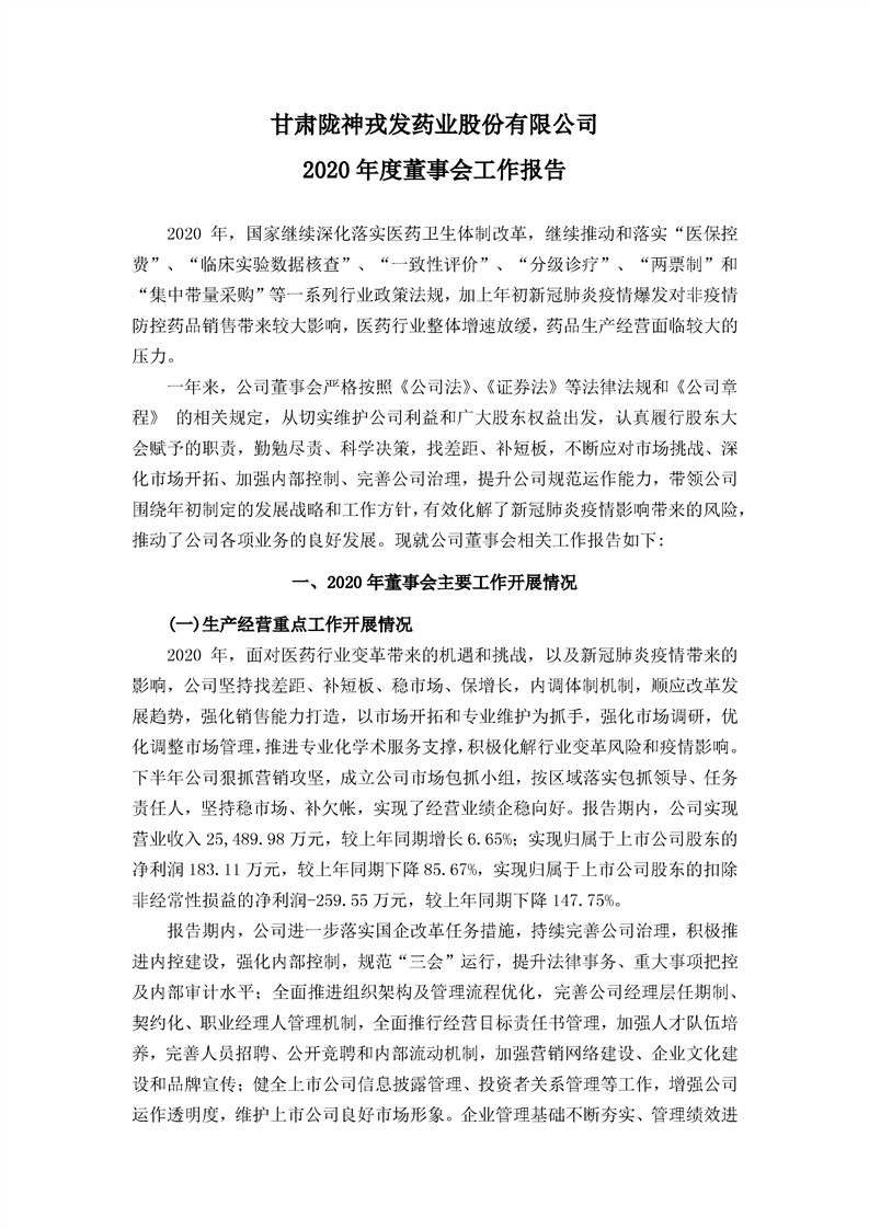 2020年度董事會(huì)工作報(bào)告