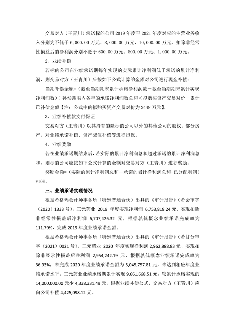 控股子公司2020年度業績承諾完成情況的專項報告(更新后)