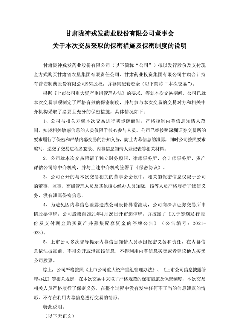 董事會關于本次交易采取的保密措施及保密制度的說明