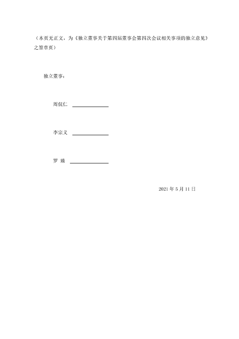 獨立董事關于第四屆董事會第四次會議相關事項的獨立意見