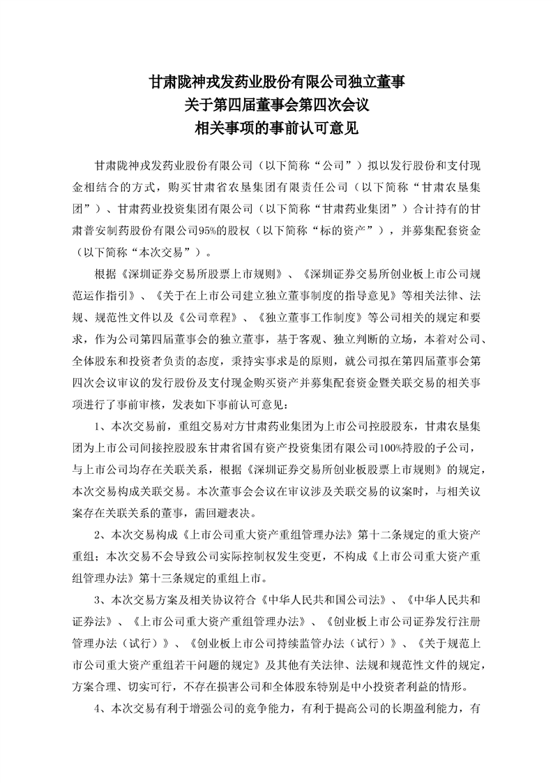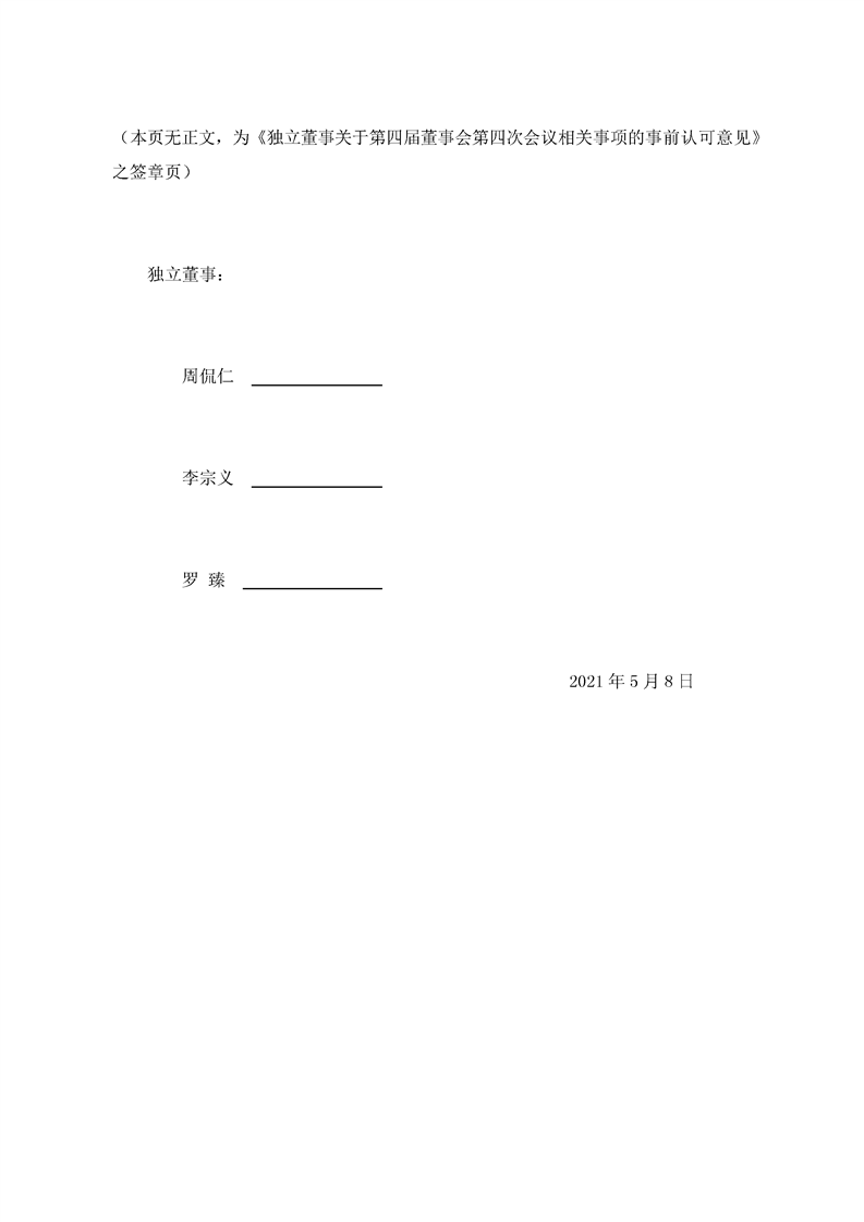 獨立董事關于第四屆董事會第四次會議相關事項的事前認可的意見