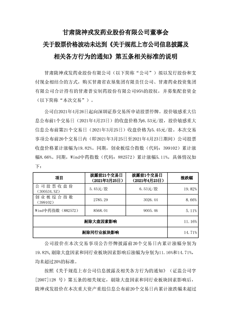 董事會關(guān)于股票價格波動未達(dá)到《關(guān)于規(guī)范上市公司信息披露及相關(guān)各方行為的通知》第五條相關(guān)標(biāo)準(zhǔn)的說明