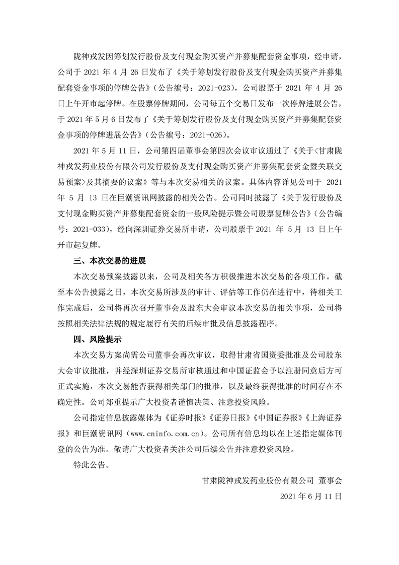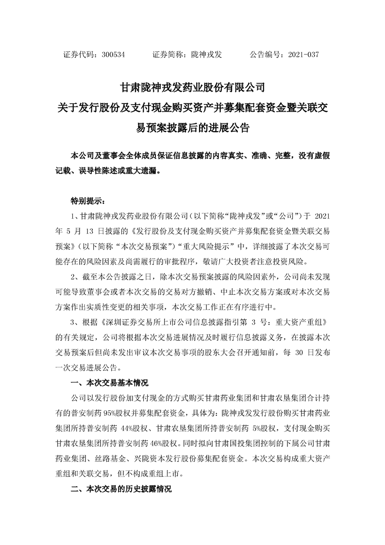 關于發行股份及支付現金購買資產并募集配套資金暨關聯交易預案披露后的進展公告