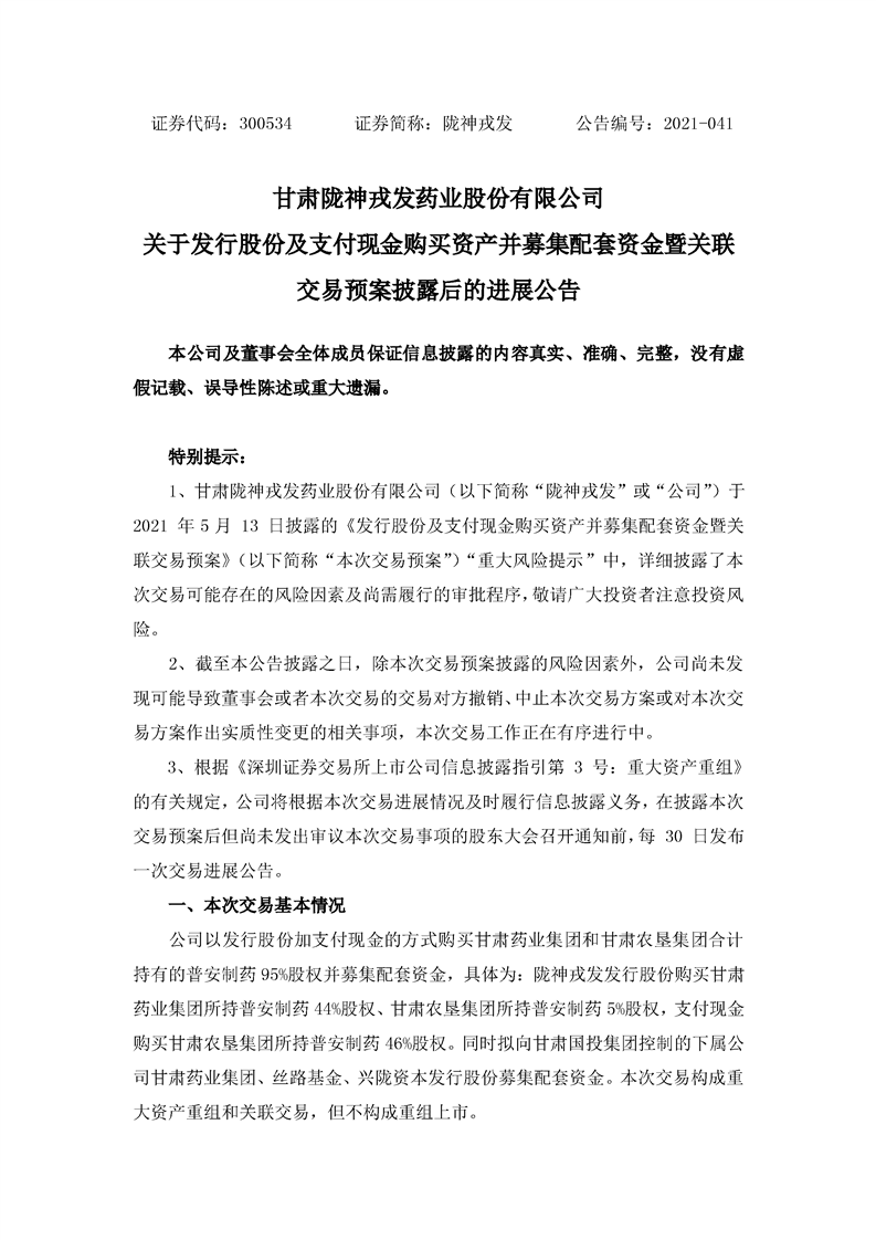關于發行股份及支付現金購買資產并募集配套資金暨關聯交易預案披露后的進展公告