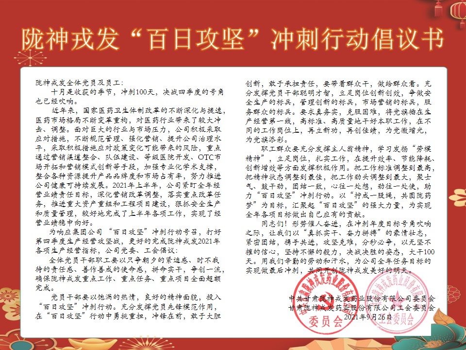 隴神戎發“百日攻堅”沖刺行動倡議書