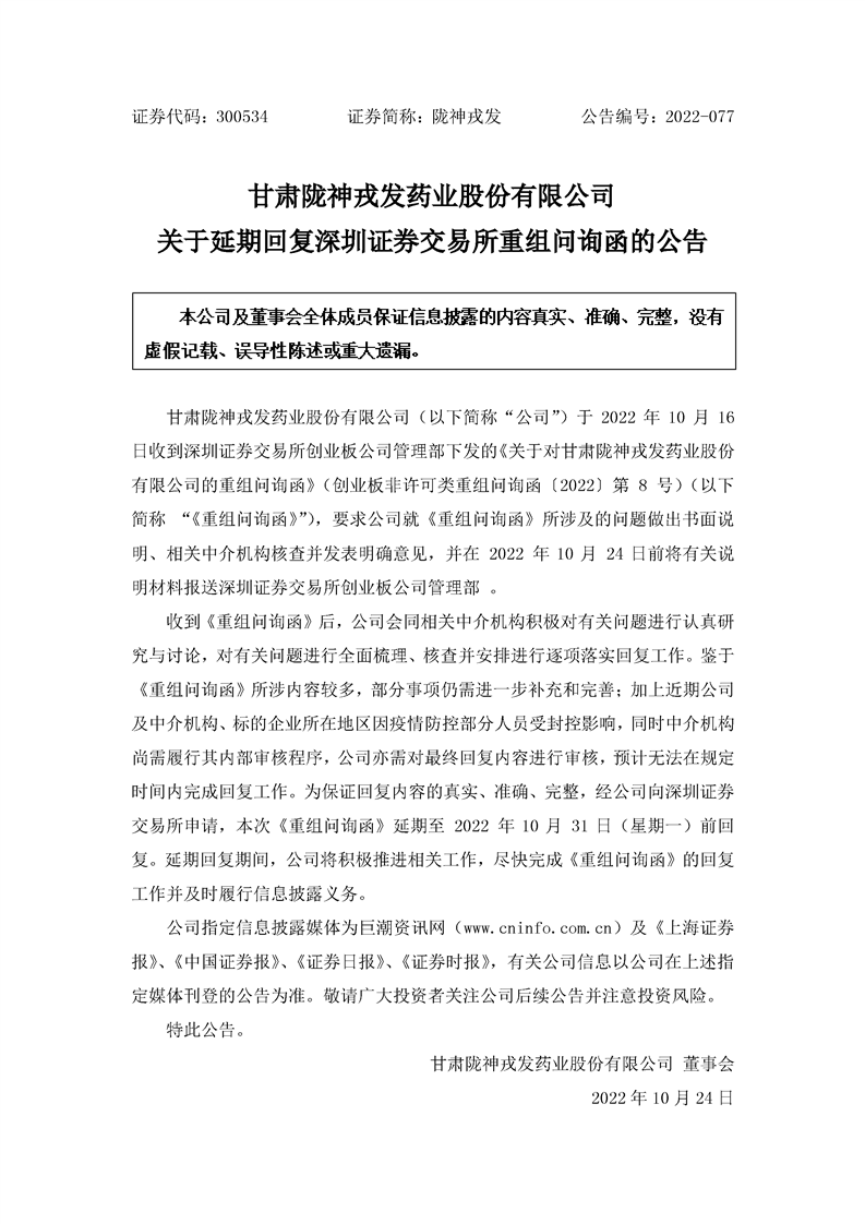 關(guān)于延期回復(fù)深圳證券交易所重組問詢函的公告