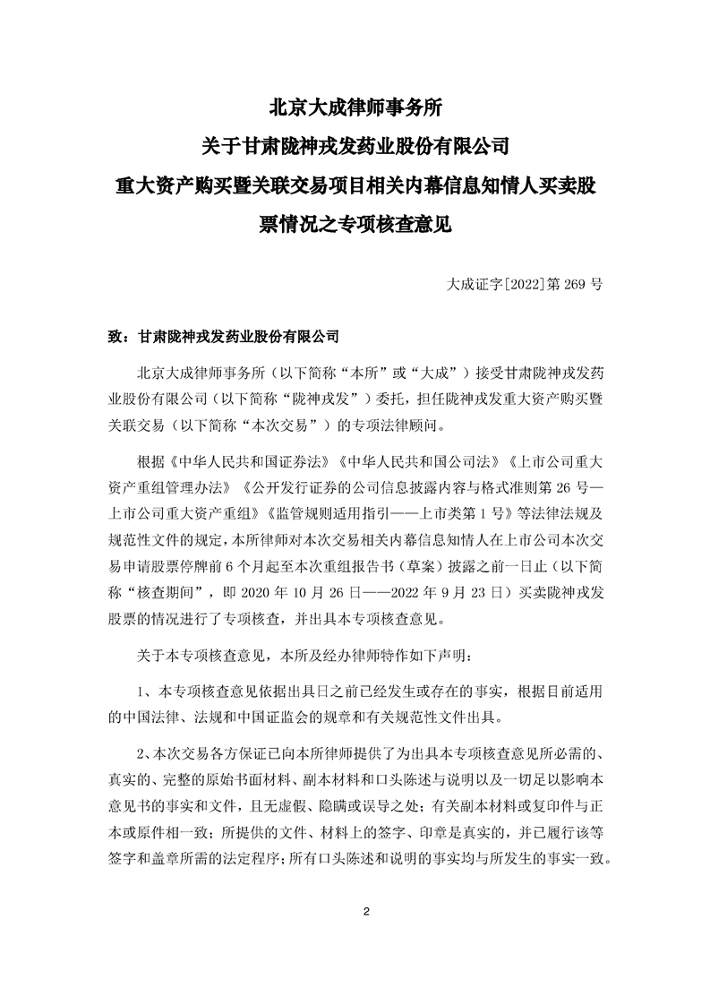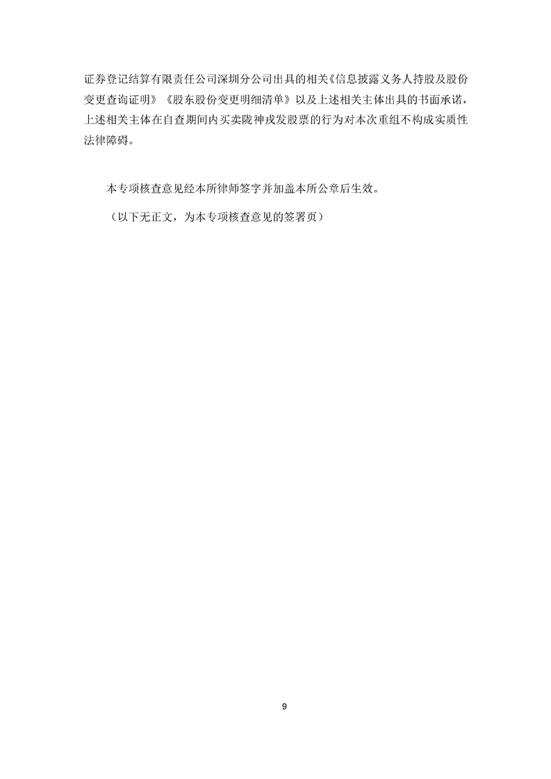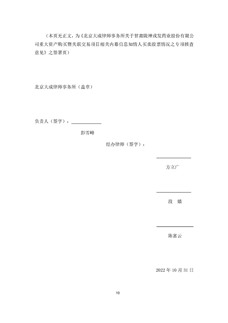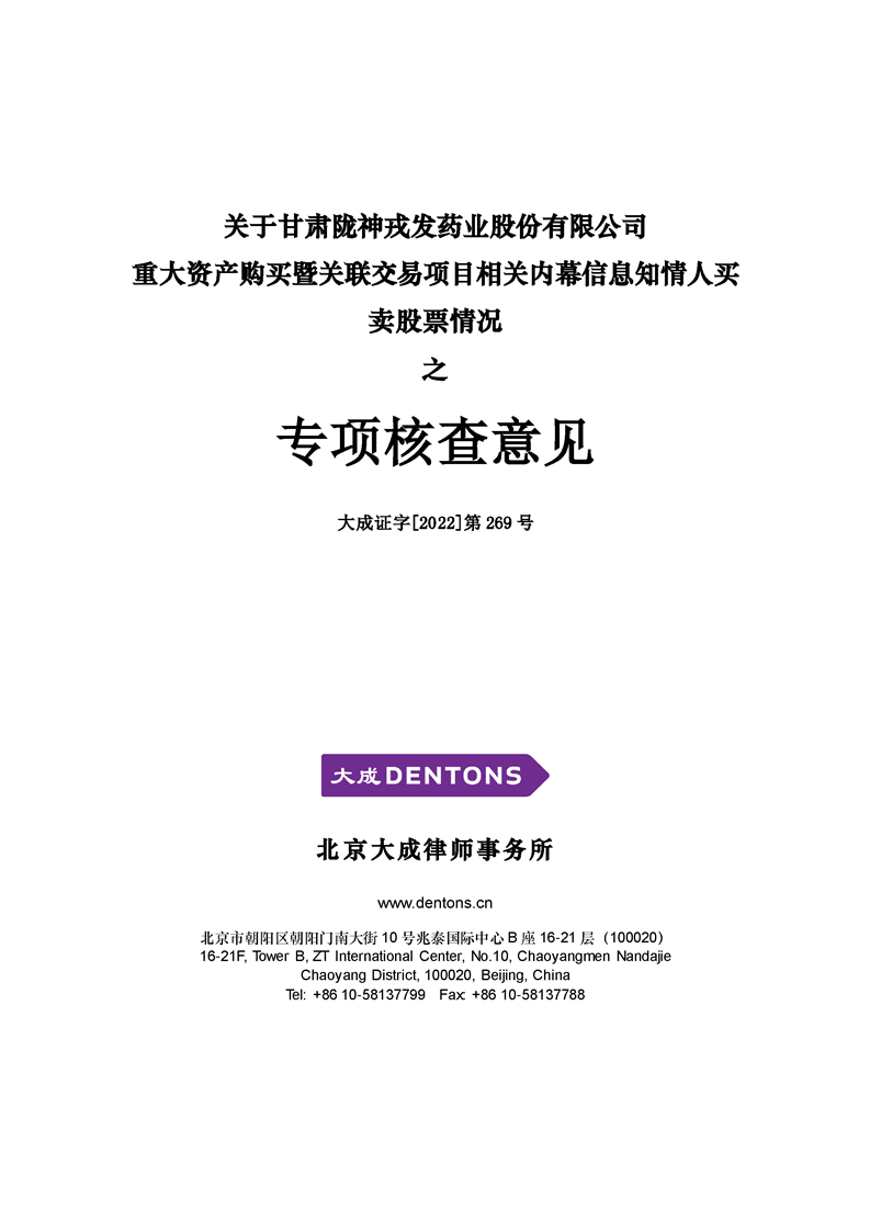 北京大成律師事務(wù)所關(guān)于本次重大資產(chǎn)重組內(nèi)幕信息知情人買賣股票專項核查意見