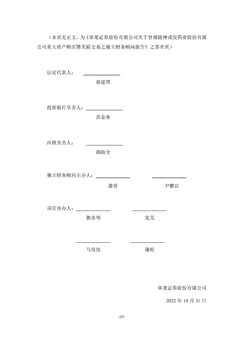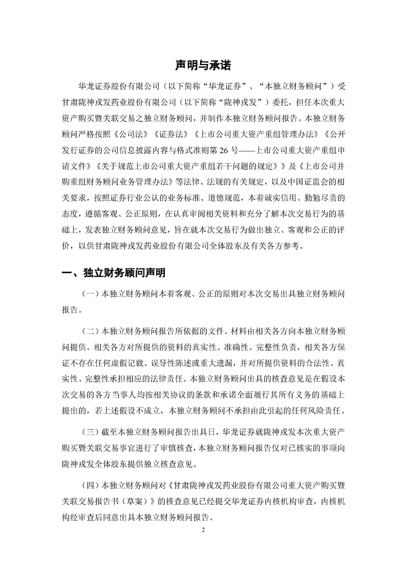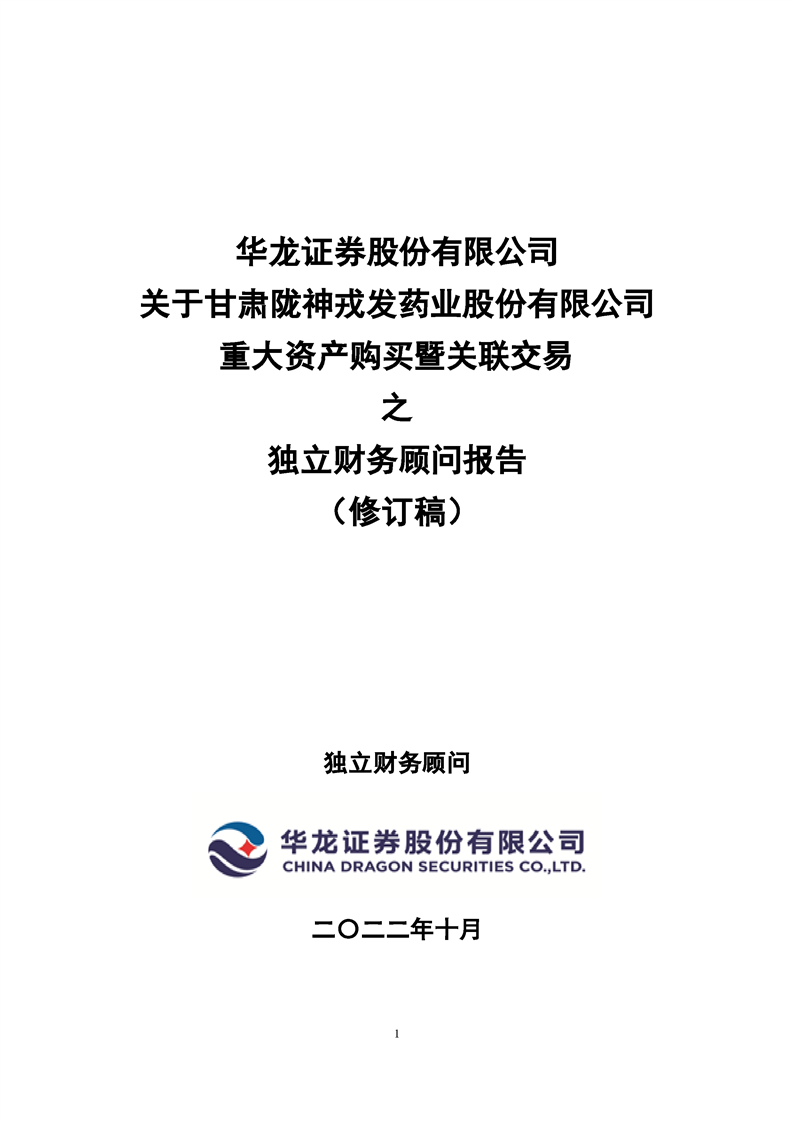 華龍證券股份有限公司關于甘肅隴神戎發藥業股份有限公司重大資產購買暨關聯交易之獨立財務顧問報告(修訂稿)