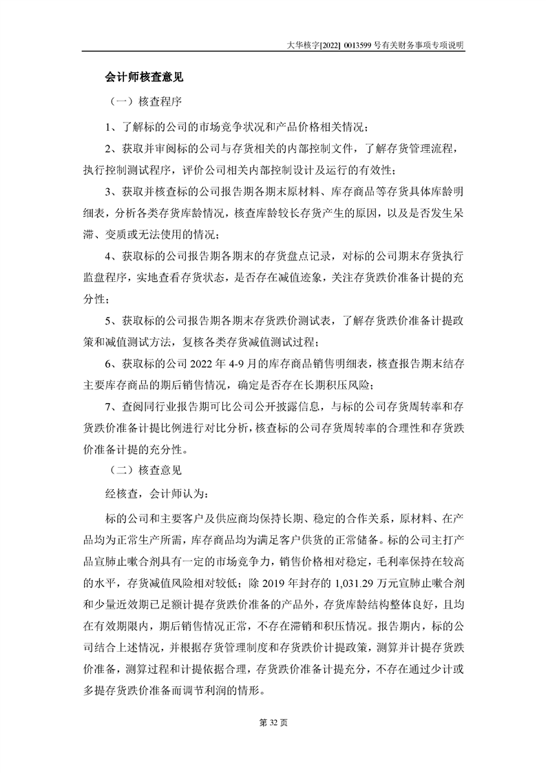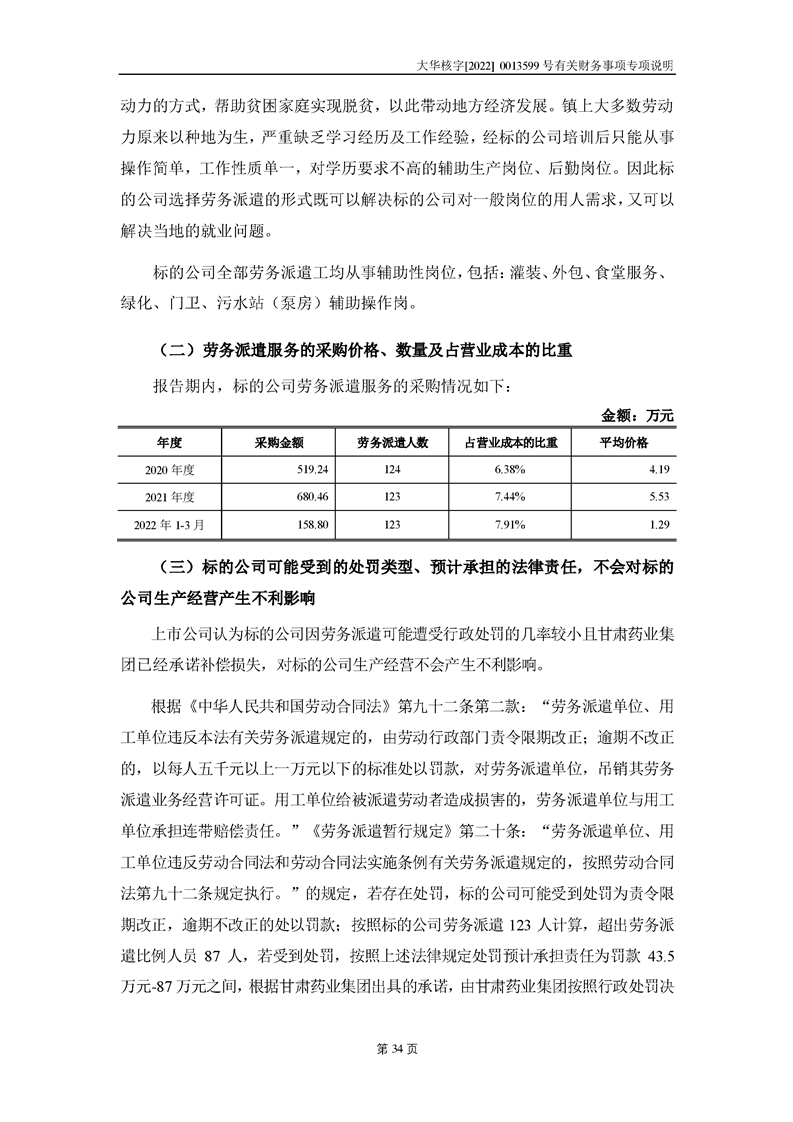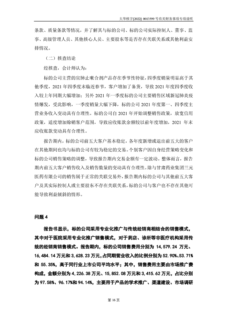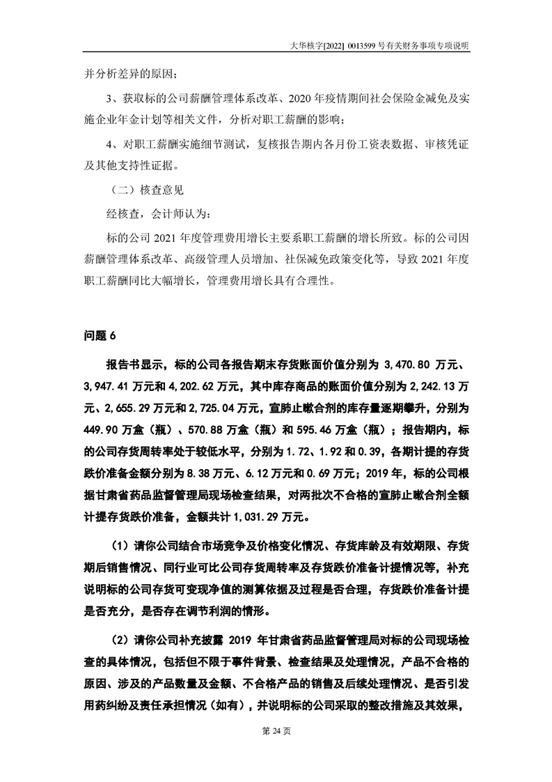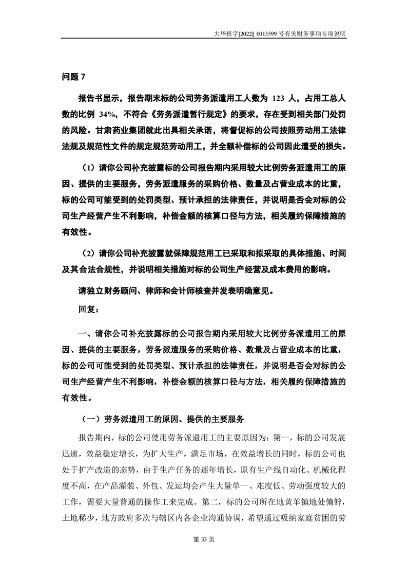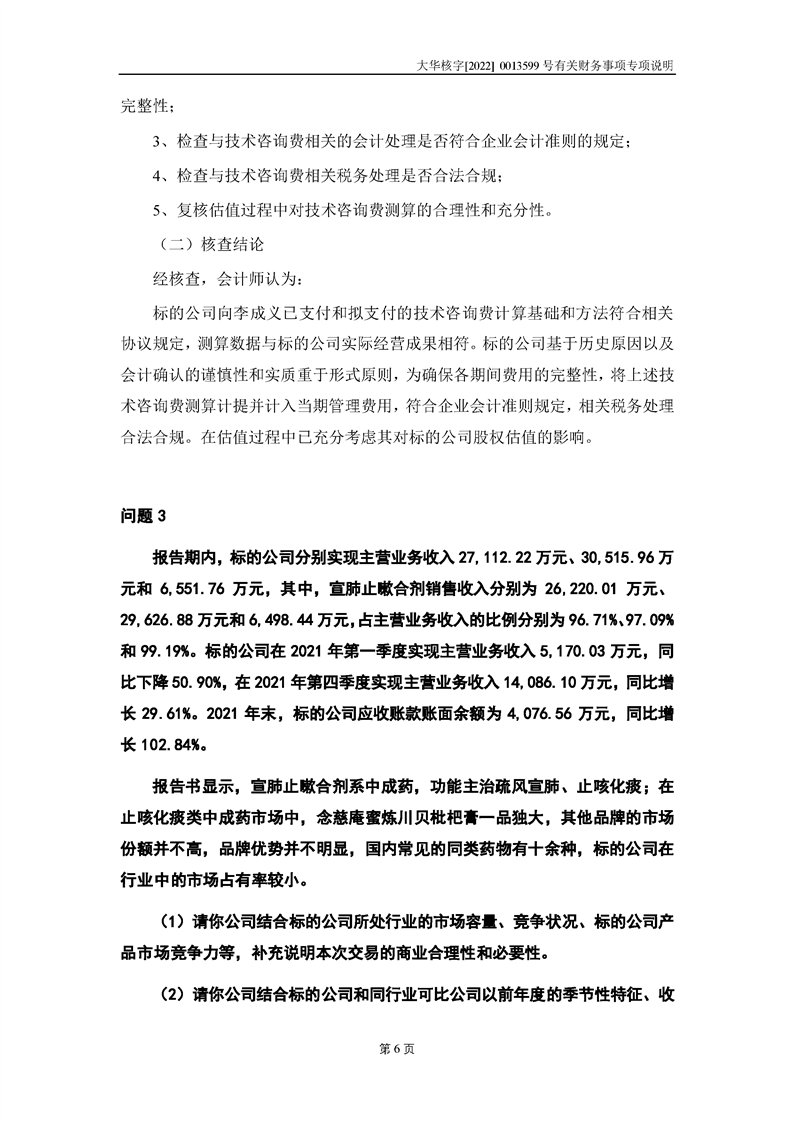 關于深圳證券交易所對甘肅隴神戎發藥業股份有限公司的重組問詢函中有關財務事項的專項說明大華核字[2022]0013599號