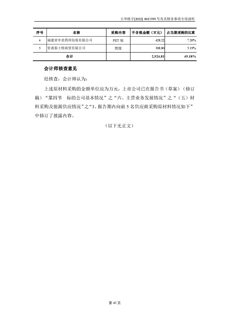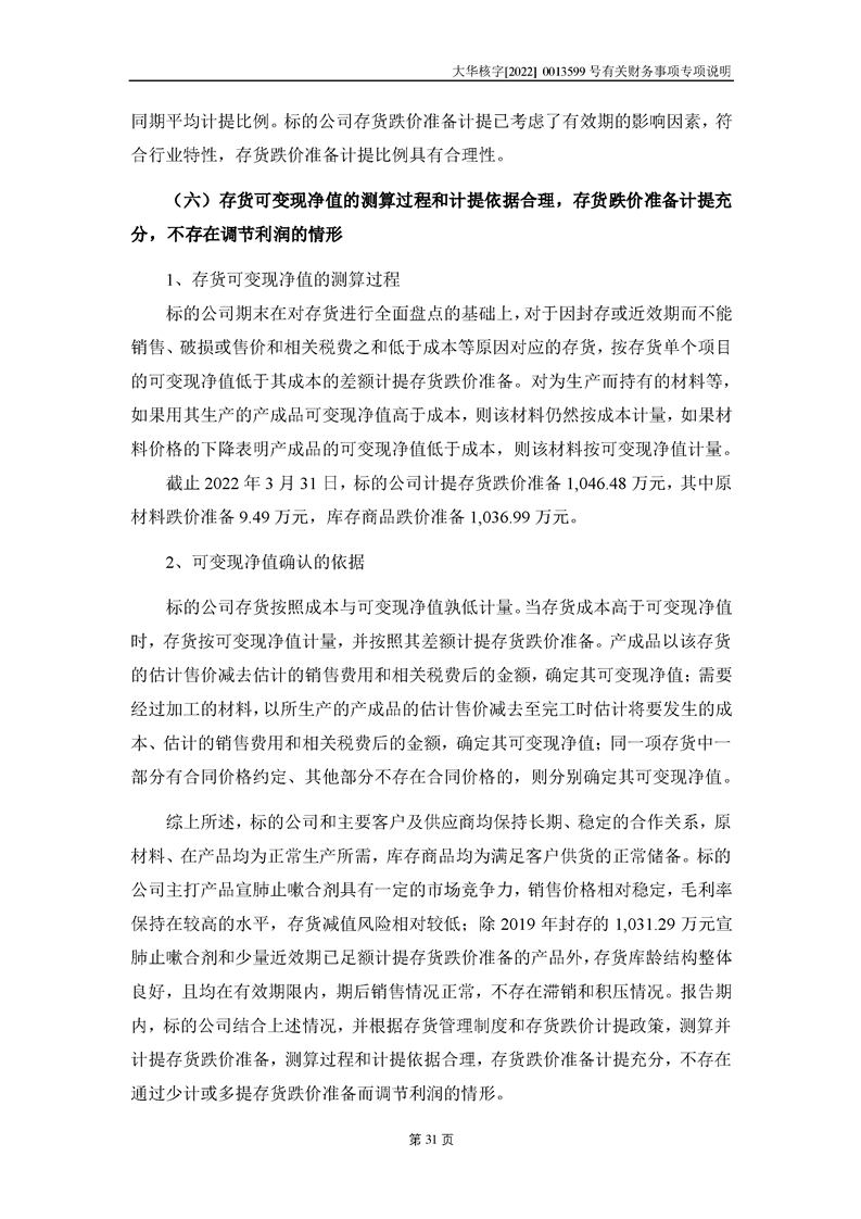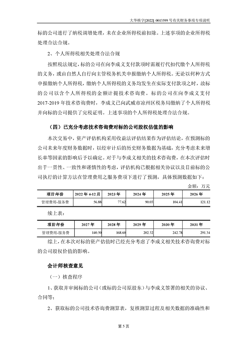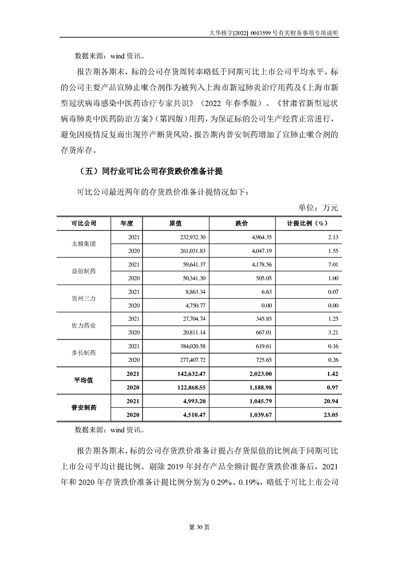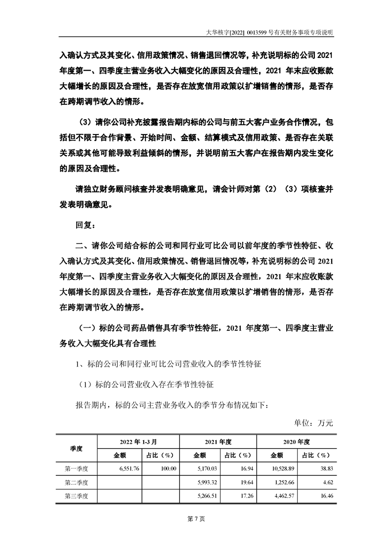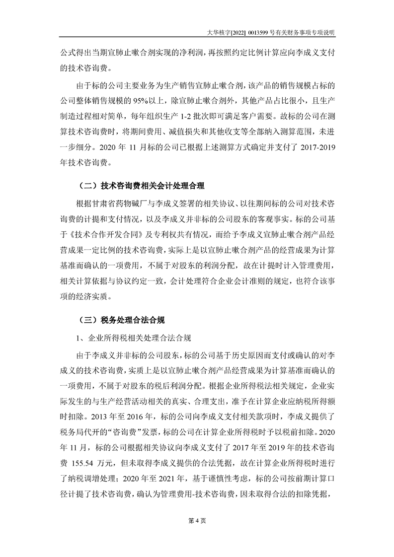 關于深圳證券交易所對甘肅隴神戎發藥業股份有限公司的重組問詢函中有關財務事項的專項說明大華核字[2022]0013599號