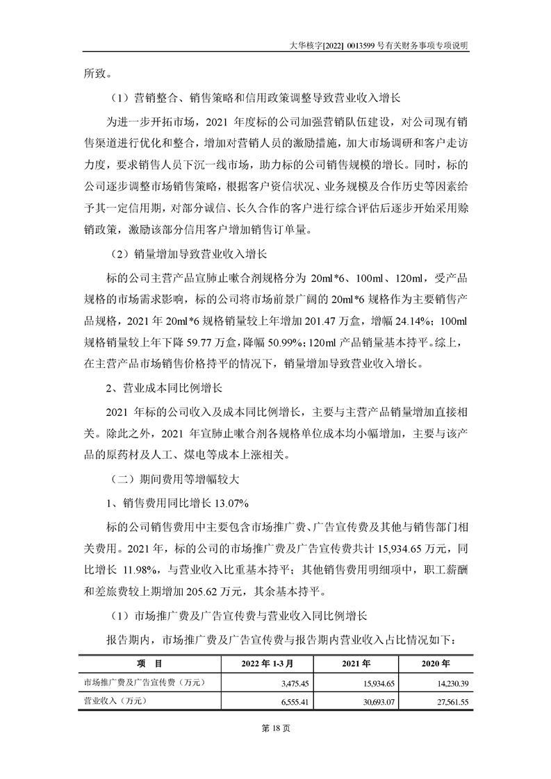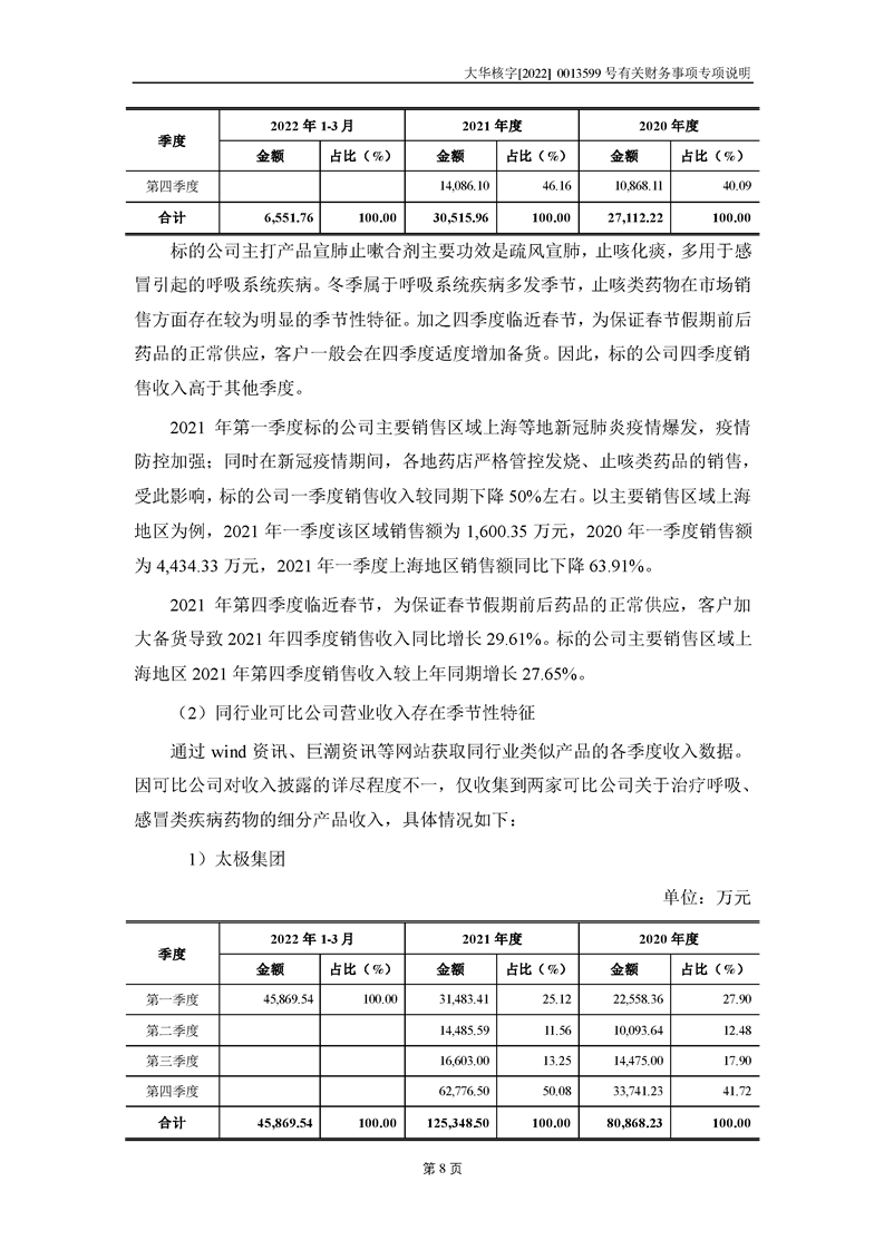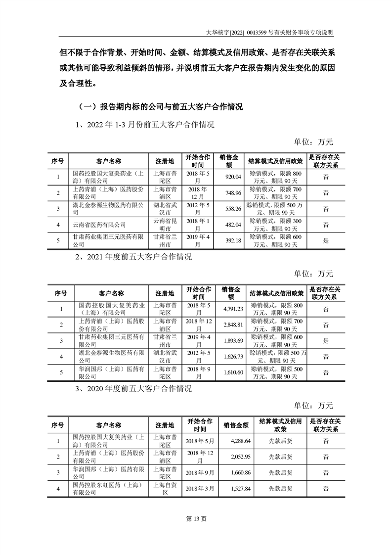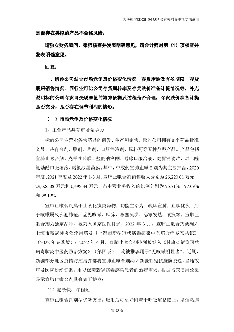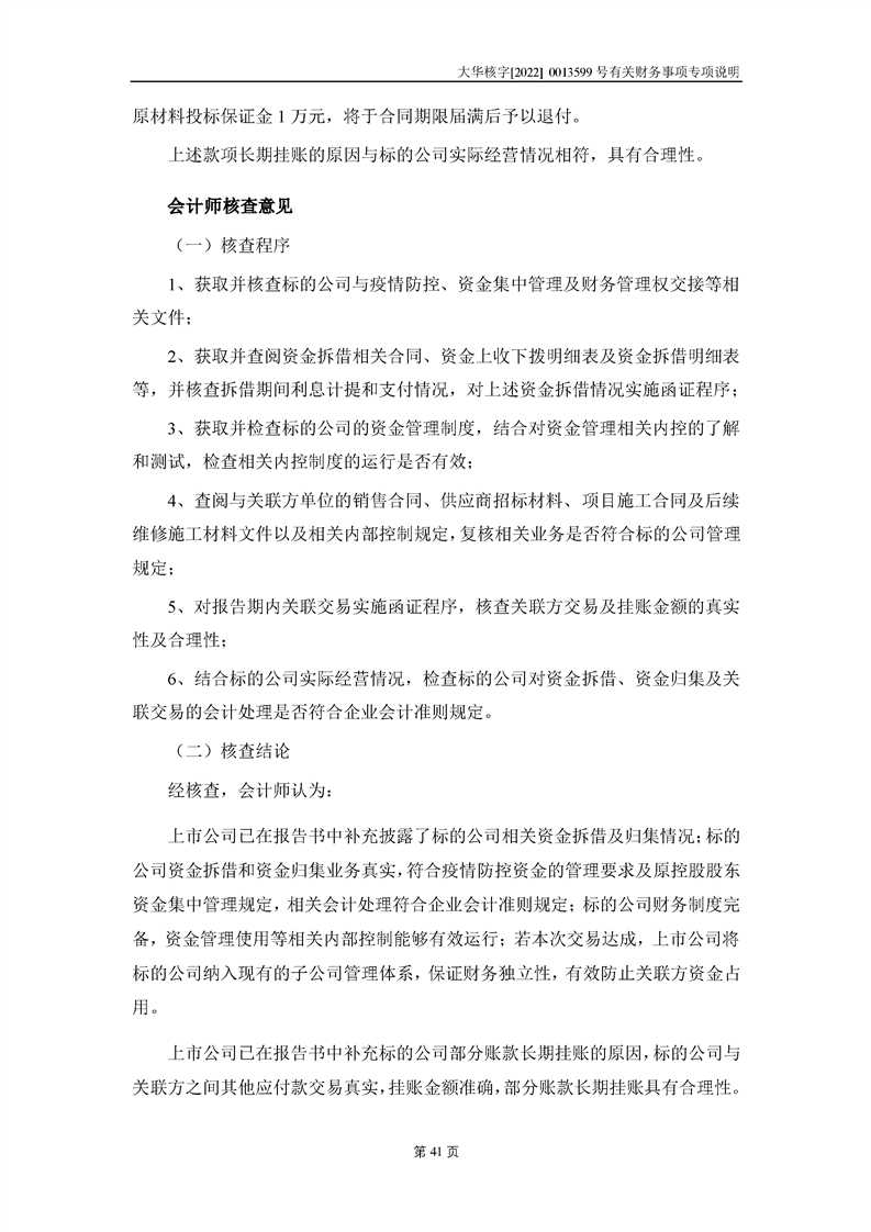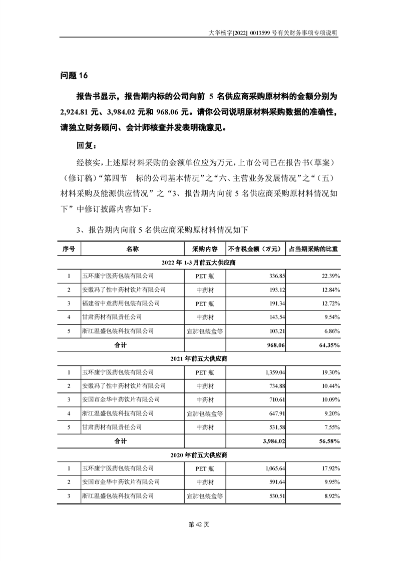 關于深圳證券交易所對甘肅隴神戎發藥業股份有限公司的重組問詢函中有關財務事項的專項說明大華核字[2022]0013599號