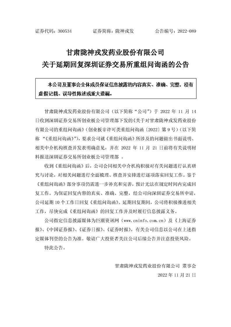 關(guān)于延期回復(fù)深圳證券交易所重組問詢函的公告