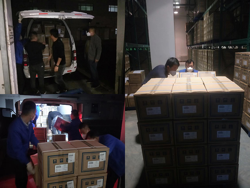 深夜一兩點,倉庫燈火通明,一堆堆待發的貨品整齊有序的擺放,為保證訂單如期交付,工程部及相關部門協調互助、通力合作,他們與時間賽跑,排除萬難,連夜加班將貨物發送至物流園。