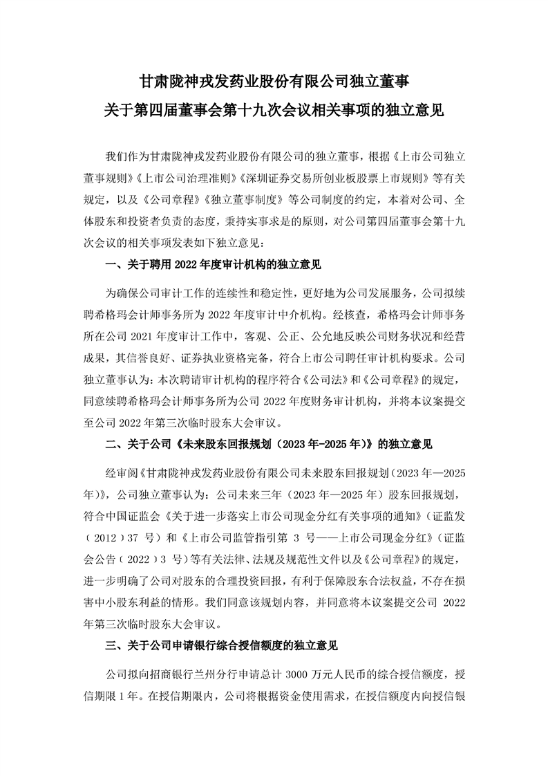 獨立董事關于第四屆董事會第十九次會議相關事項的獨立意見