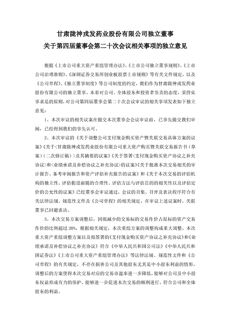 獨立董事關于第四屆董事會第二十次會議相關事項的獨立意見