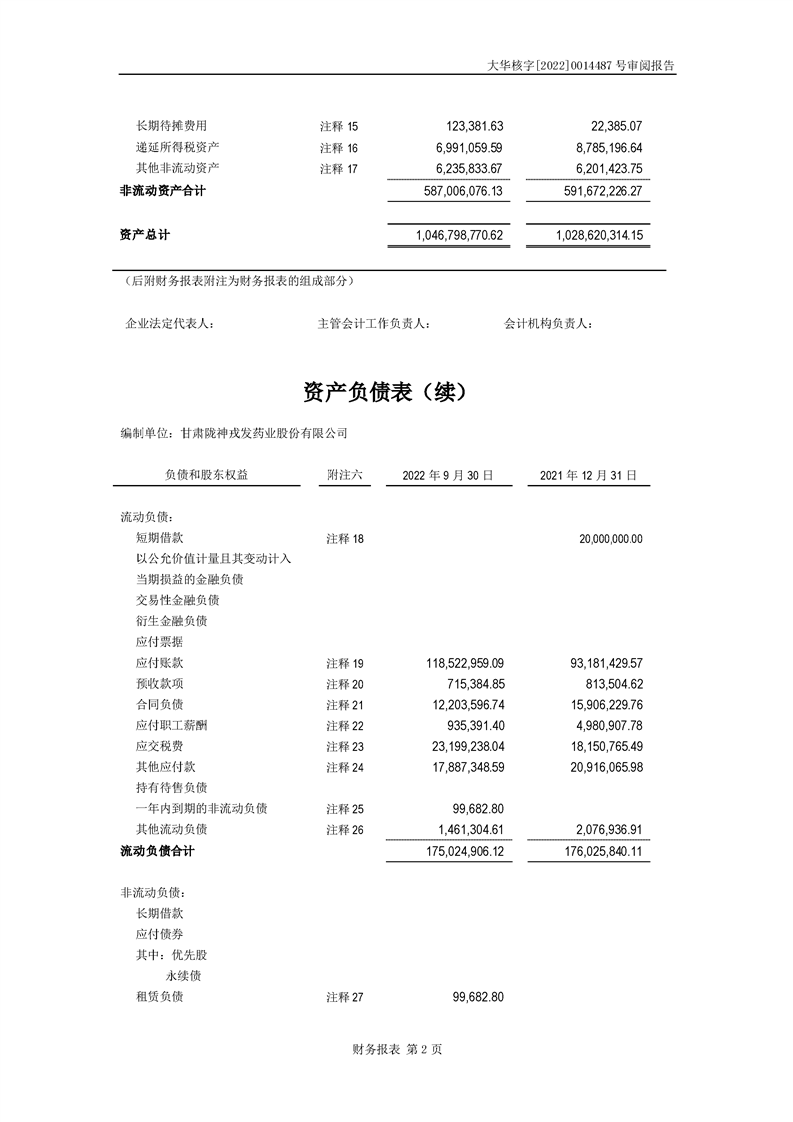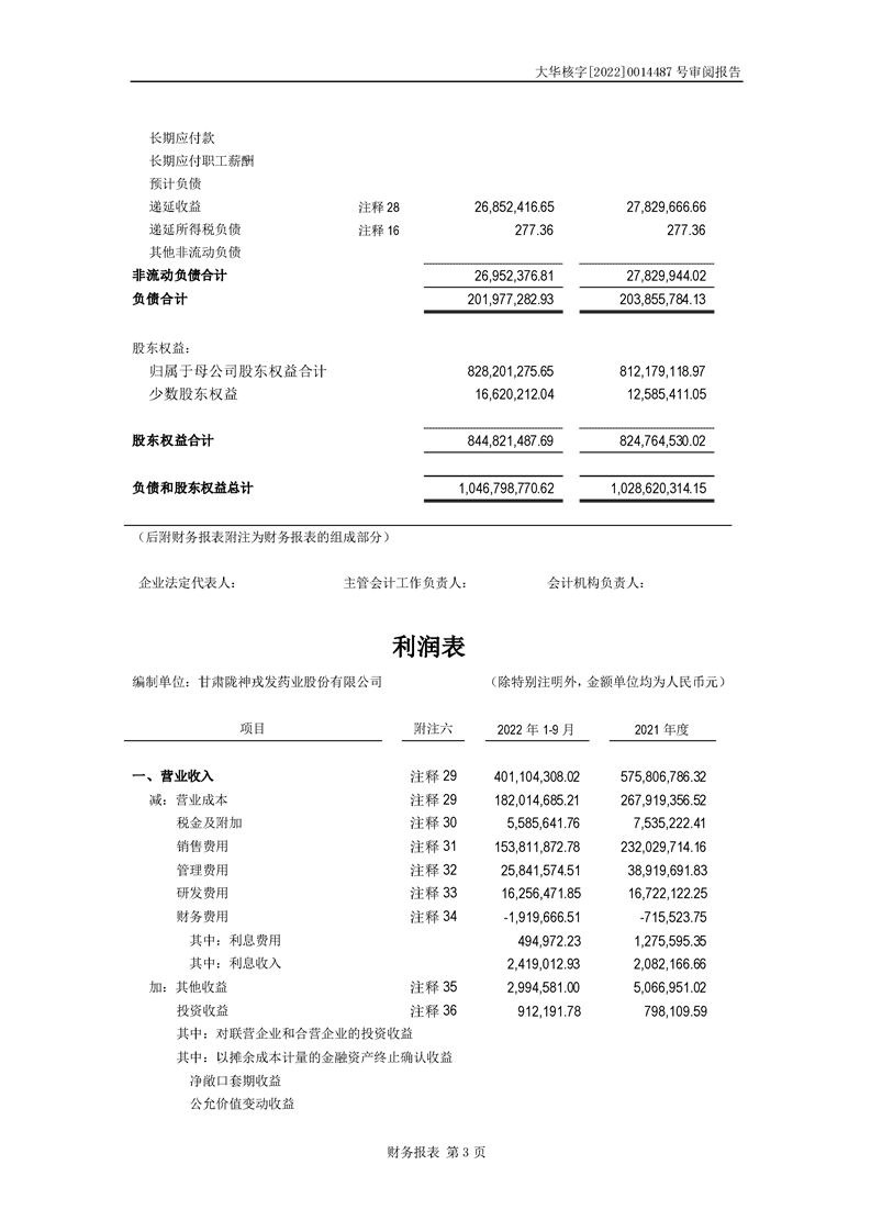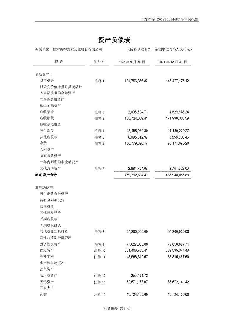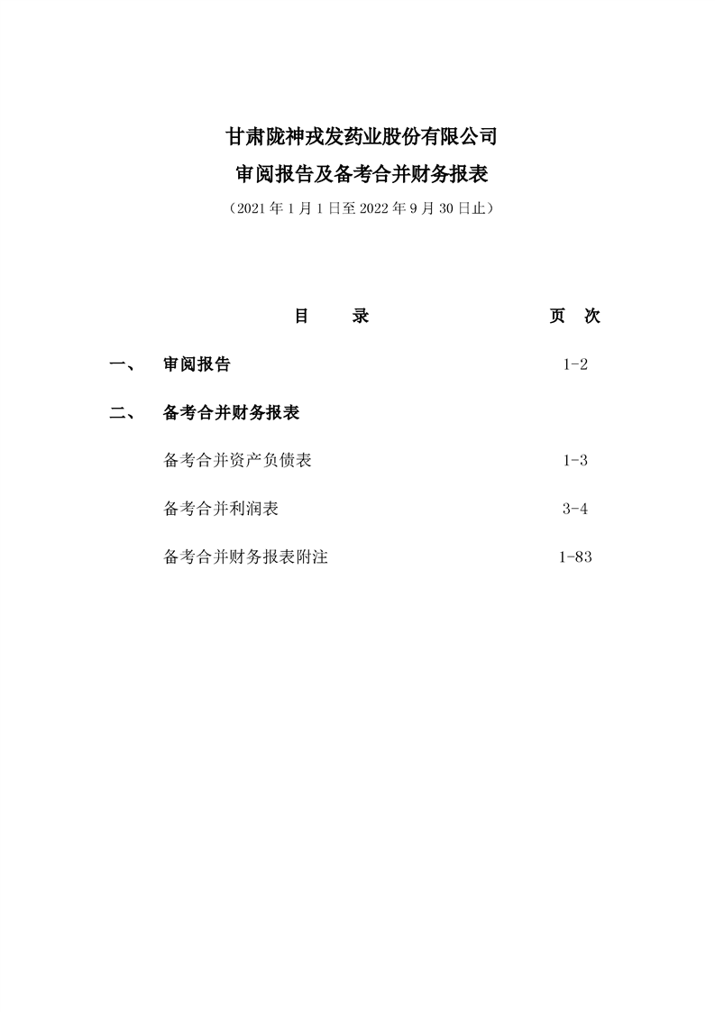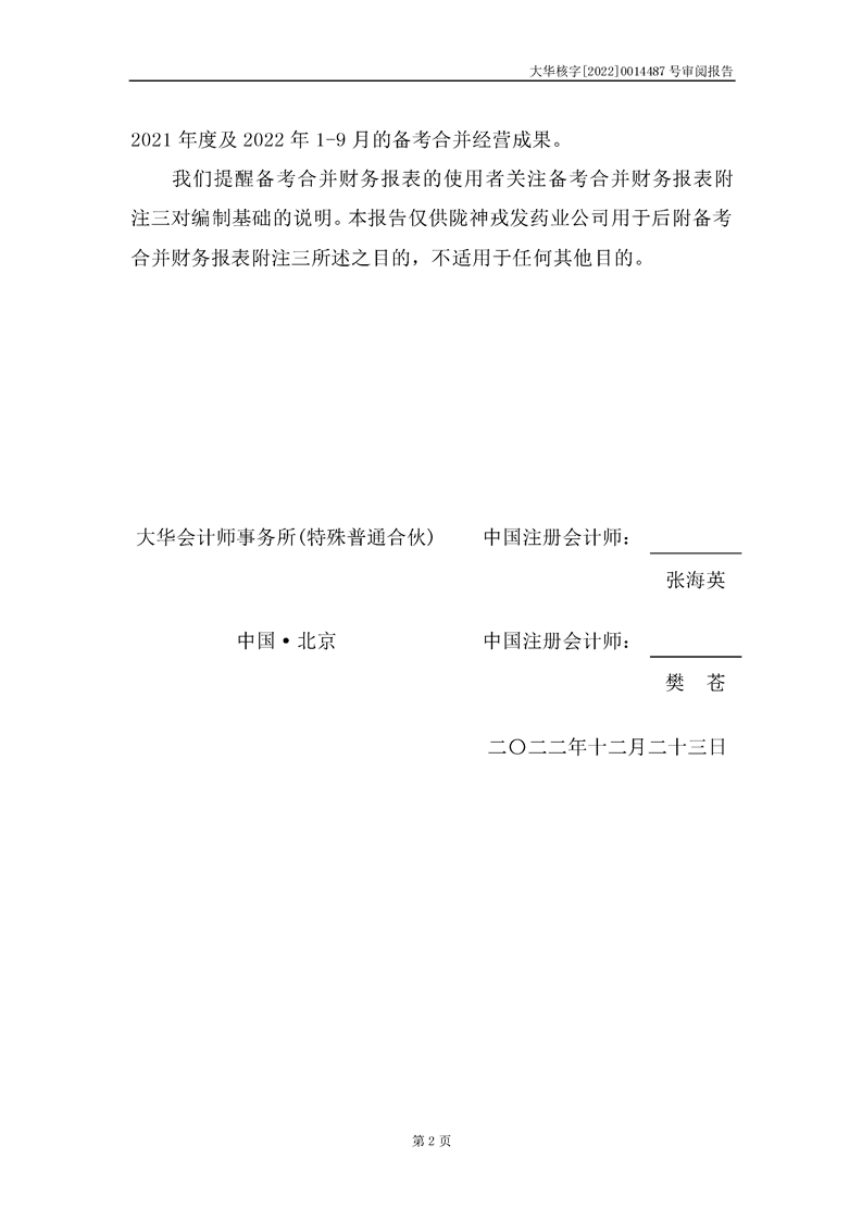 甘肅隴神戎發(fā)藥業(yè)股份有限公司備考財(cái)務(wù)報(bào)表審閱報(bào)告-大華核字[2022]0014487號
