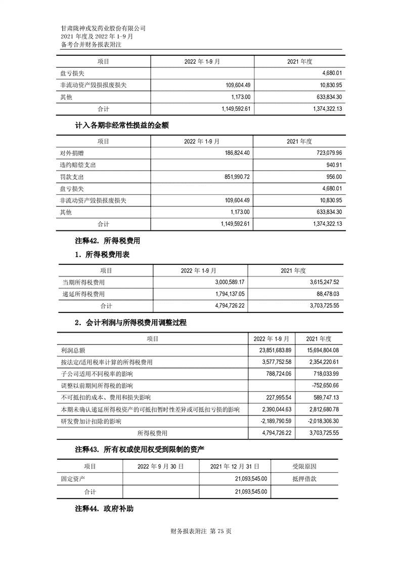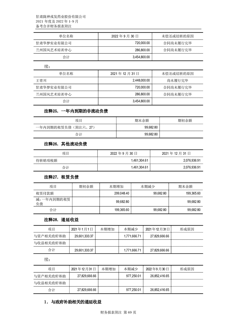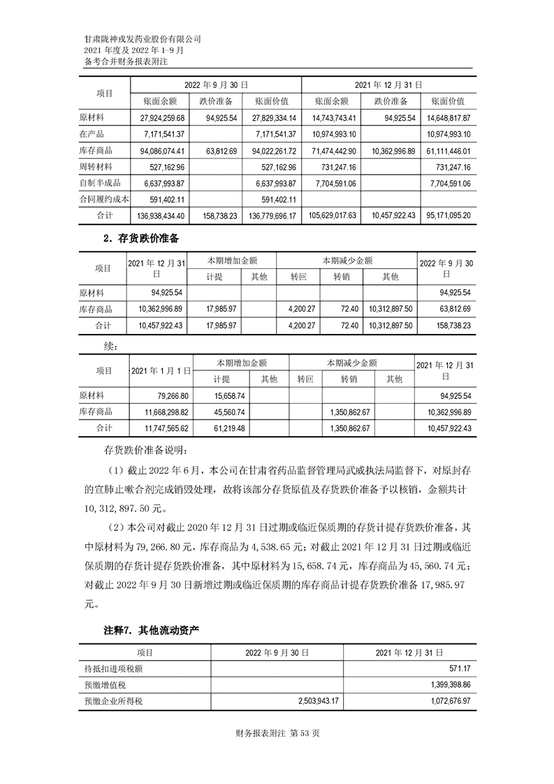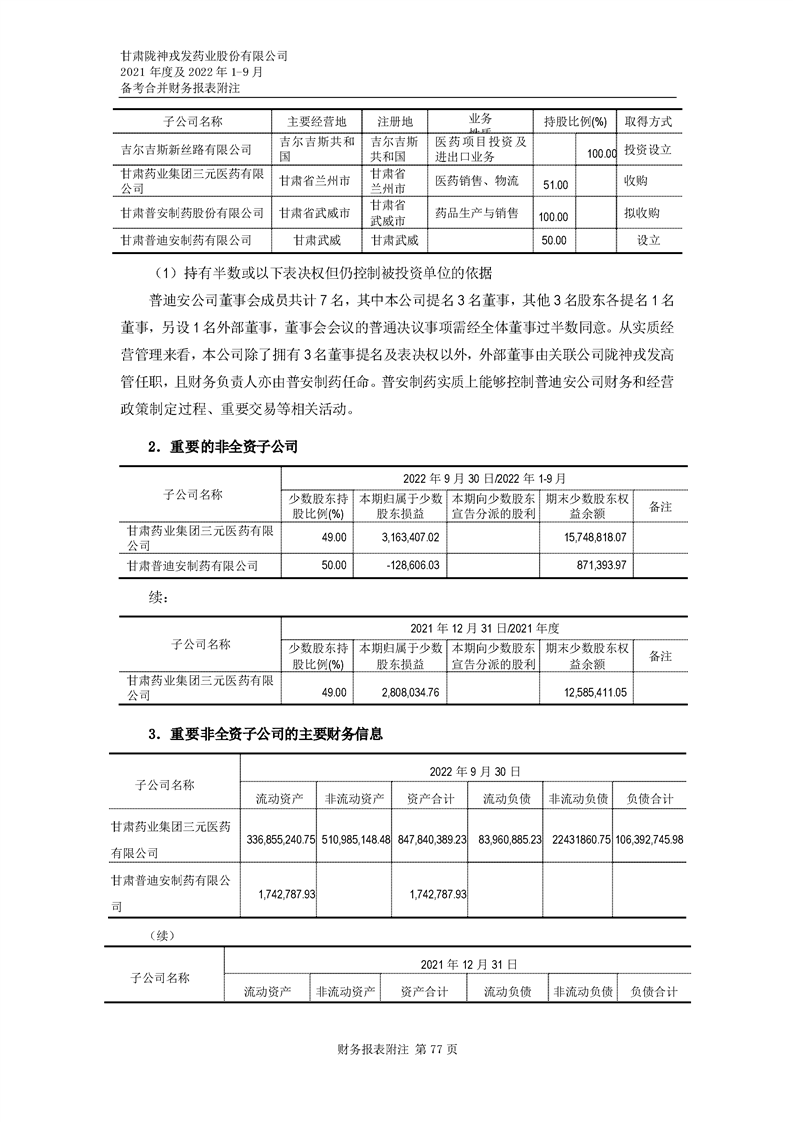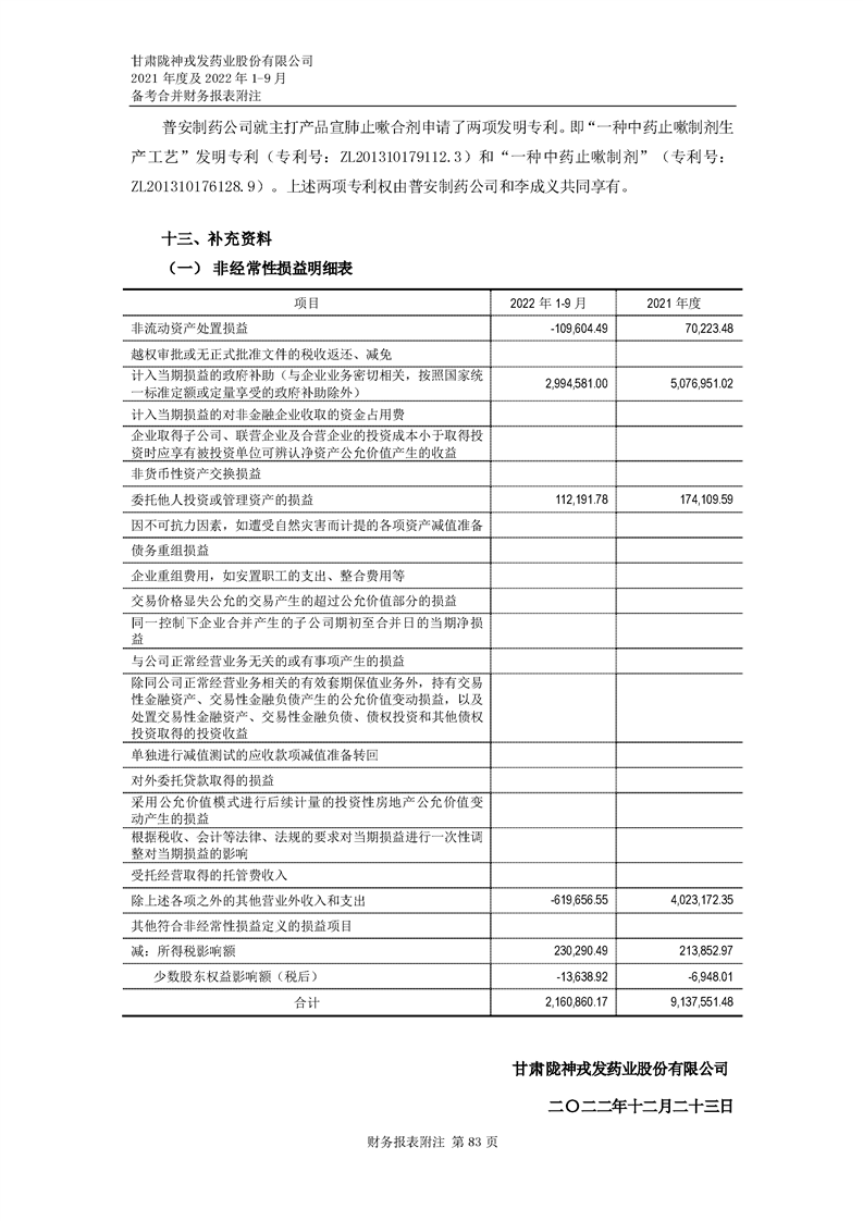 甘肅隴神戎發(fā)藥業(yè)股份有限公司備考財(cái)務(wù)報(bào)表審閱報(bào)告-大華核字[2022]0014487號