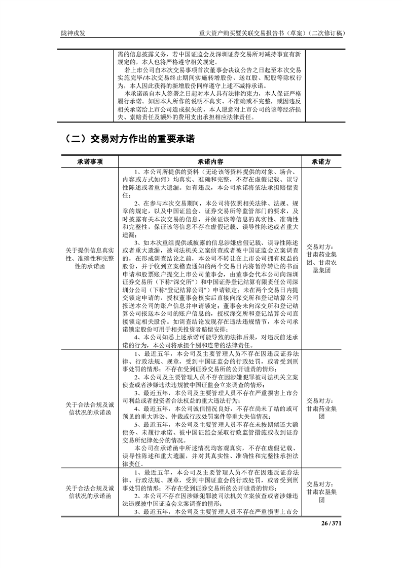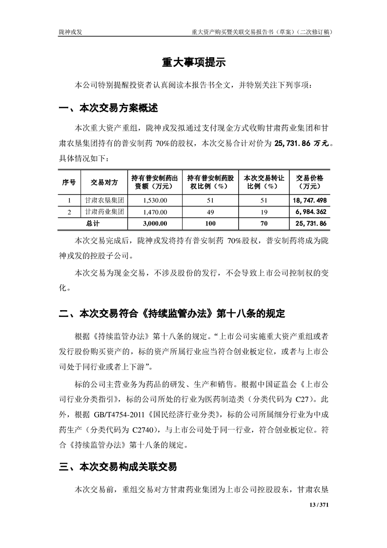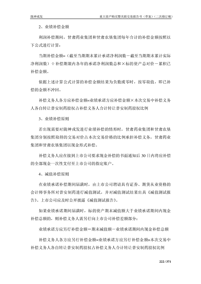 甘肅隴神戎發(fā)藥業(yè)股份有限公司重大資產(chǎn)購買暨關(guān)聯(lián)交易報(bào)告書(草案)摘要(二次修訂稿)