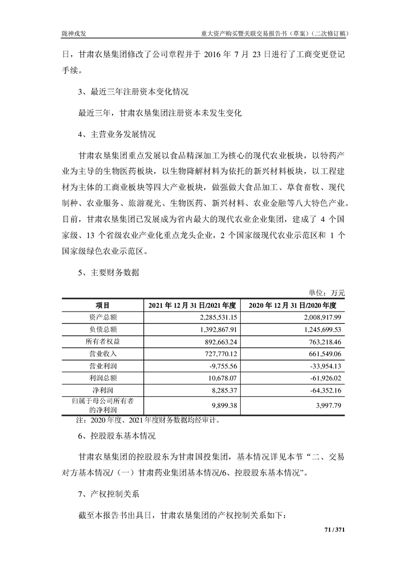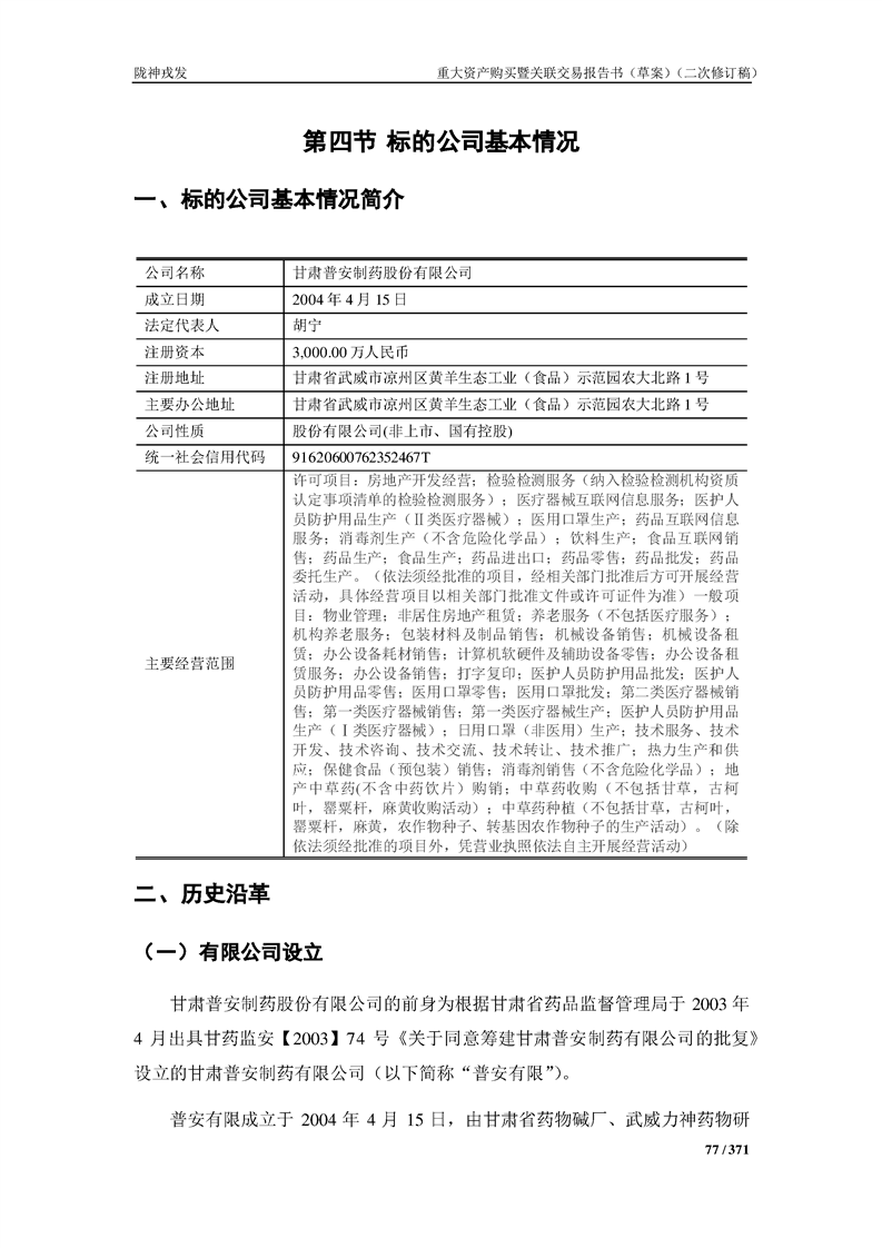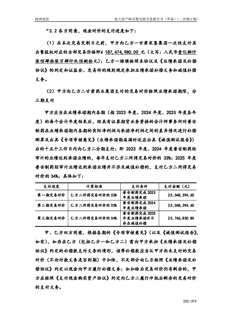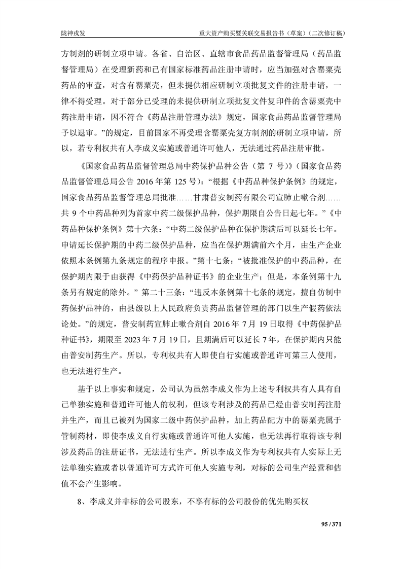 甘肅隴神戎發(fā)藥業(yè)股份有限公司重大資產(chǎn)購買暨關(guān)聯(lián)交易報(bào)告書(草案)摘要(二次修訂稿)