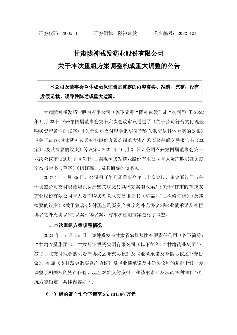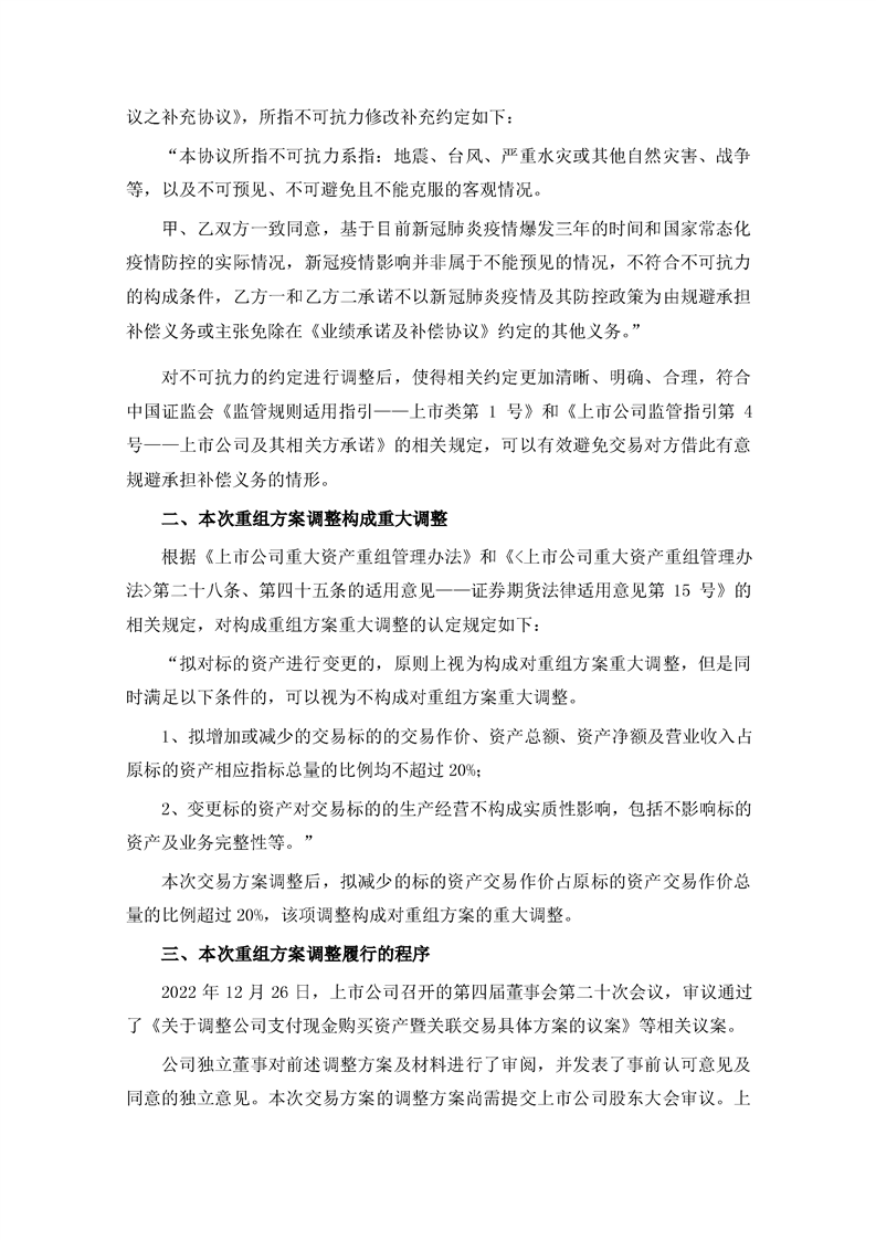 關(guān)于本次重組方案調(diào)整構(gòu)成重大調(diào)整的公告